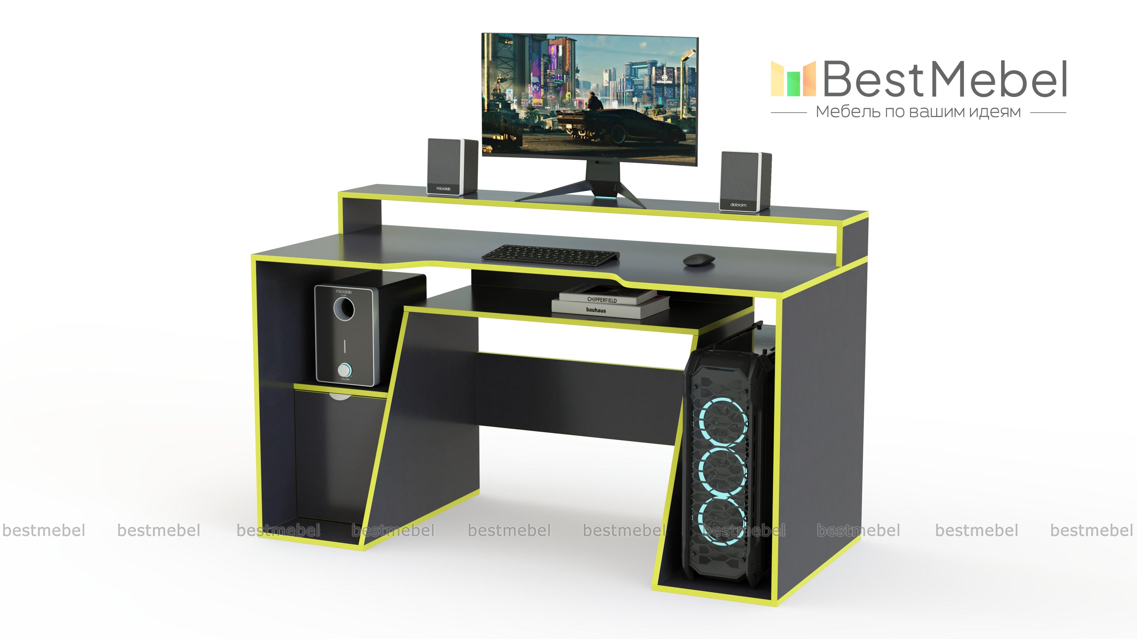 Игровой стол Диего-10 BMS отличается футуристичными формами и стильной асимметрией. Модель со скошенными фасадами и боковиной выполнена в нейтральном черном цвете с белой кромкой и эффектно смотрится в современном интерьере. Столешница с эргономичным вырезом дополнена надстройкой под монитор и периферийные устройства, для размещения системного блока и рабочих материалов предусмотрены ниши и глухое отделение. Купить игровой стол Диего-10 BMS вы сможете на сайте нашего интернет-магазина.