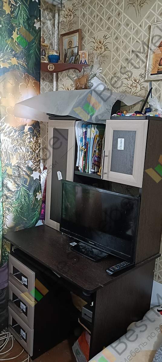 Хороший стол для школьника. Много полочек и ящиков. Пользуемся второй год, стоит, как новый) О покупке не жалеем. Изготовили по нашим размерам, и при этом очень быстро. 00000444629