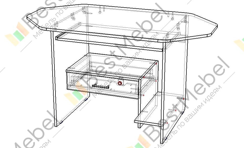 Для любителей современного дизайна и небольшого размера мебели мы изготавливаем компьютерный стол 14.01. Будь то офис или домашний кабинет, стол окажется хорошим дополнением интерьера. Модель состоит из выдвижной панели для клавиатуры, полки, ниши для системного блока и ящика, в котором можно хранить ценные вещи, так как он имеет замок. На сайте Вы можете определиться с расцветкой и параметрами изделия, а также непосредственно заказать его изготовление.