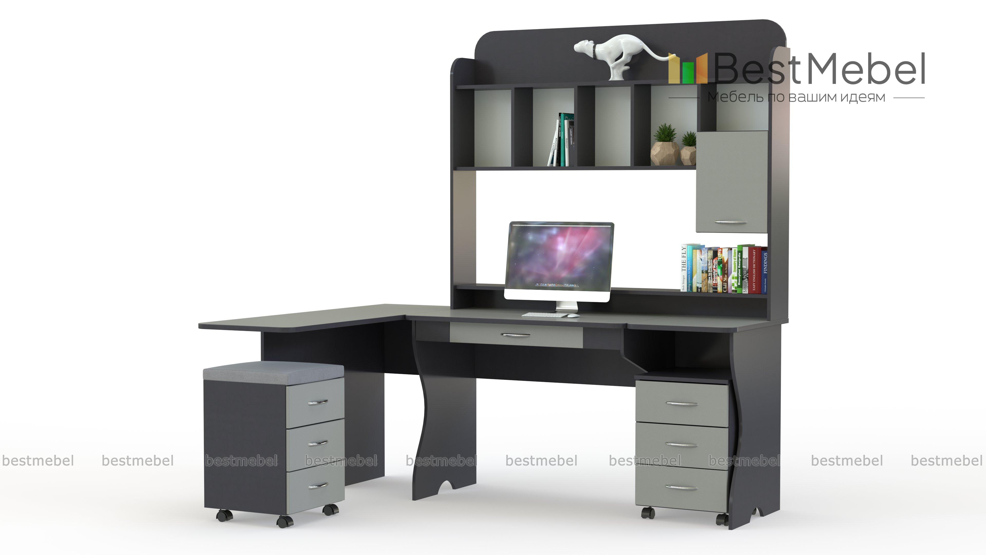 Угловой компьютерный стол Анкар BMS отличается современным дизайном и широким функционалом. Практичная комбинированная модель оборудована регулируемой столешницей с выдвижным ящиком для мелочей и надстройкой, которая поможет разместить монитор и оптимизировать хранение книг и документации. Дополняют стол две выкатные тумбы и боковой элемент, увеличивающий рабочую поверхность. Купить угловой компьютерный стол Анкар BMS вы сможете в нашем интернет-магазине, подобрав цветовое решение из богатой палитры.