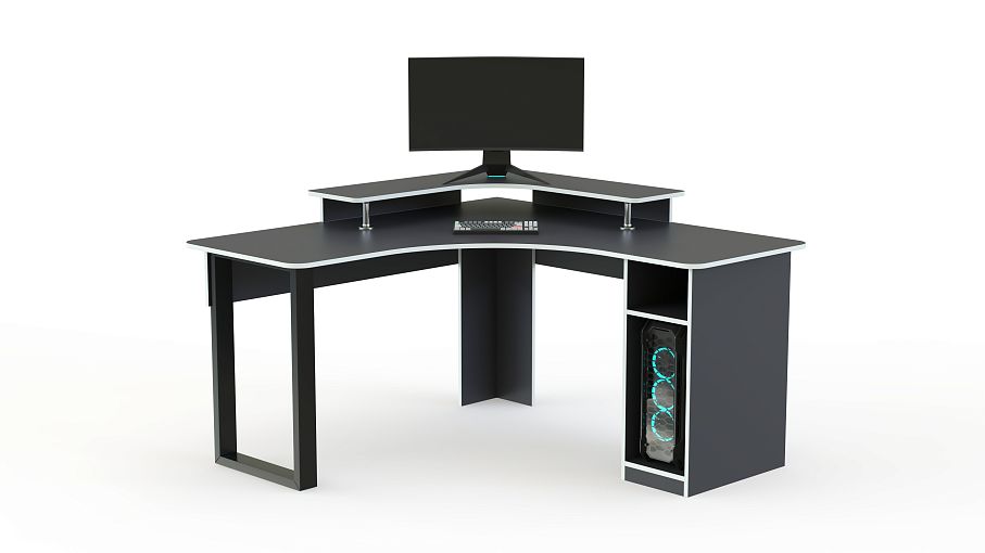 Компьютерный стол Анкор BMS предназначен для геймеров и тех, кто проводит за компьютером длительное время. Угловая модель оборудована просторной столешницей с надстройкой для монитора и периферийных устройств и открытой тумбой с отделениями под системный блок и рабочие материалы. Стол эффектно смотрится в черном цвете с контрастной кромкой и безопасно закруглен по углам. Купить компьютерный стол Анкор BMS и рационально организовать пространство вам поможет наш интернет-магазин.