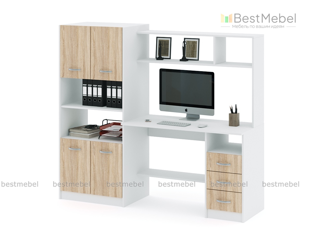 Компьютерный стол Август -11 BMS поможет организовать комфортное рабочее место. Модель оборудована просторной столешницей, тумбой с выдвижными ящиками для канцелярских мелочей, нижней полкой, надстройкой и комбинированным стеллажом с распашными отделениями в верхней части и основании. Вы аккуратно разместите документы, книги, оргтехнику, а несколько вариантов расцветки позволят гармонично вписать стол в интерьер. Купить компьютерный стол Август -11 BMS по доступной цене приглашаем к нам в интернет-магазин.