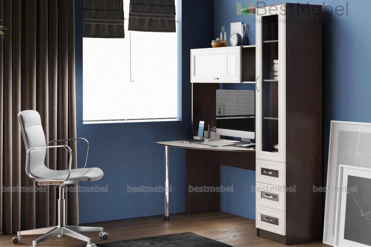 Угловой компьютерный стол Бонус-2 BMS - это комфортная эргономика в сочетании с традиционным дизайном. Плавно вырезанная угловая столешница на регулируемой опоре вписана в конструкцию с надстройкой и высоким пеналом. Фасады с рамочной фрезеровкой выполнены в светлых тонах, выдвижные ящики чередуются застекленными распашными отделениями и открытыми полками. Купить угловой компьютерный стол Бонус-2 BMS и эффективно использовать пространство вам поможет наш интернет-магазин.