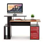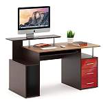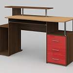 Компьютерный стол МБ 14.1 BMS станет эффектным дополнением стильного офиса или современного домашнего интерьера. Визуально легкая и вместительная, модель оборудована просторной столешницей с выдвижной полкой для клавиатуры, отделением под системный блок, тумбой с выдвижными ящиками и нишей и оригинальной подставкой для монитора. В оформлении сочетаются древесные тона, яркий глянец фасадов и хромированные элементы. Купить компьютерный стол МБ 14.1 BMS приглашаем по лучшей цене в наш интернет-магазин.