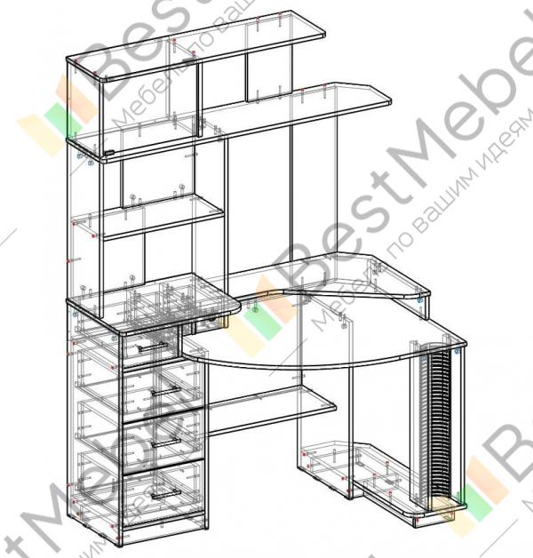 Компьютерный стол Мэри-Бэст СР-180.1 BMS прекрасно подходит для работы в малогабаритных помещениях. Практичная форма экономит пространство и позволяет разместить все необходимое на расстоянии вытянутой руки. Скругленная столешница имеет подставку для монитора, а также ступенчатую надстройку с полками и выдвижными ящиками, а секция для системного блока, полка и тумба размещены под столом. Купить компьютерный стол Мэри-Бэст СР-180.1 BMS приглашаем в наш интернет-магазин, подобрав цвет и фурнитуру.