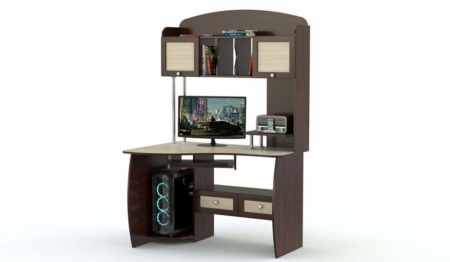 Компьютерный стол Млайн 13 станет отличным выбором даже для небольших квартир. Удобный, современный дизайн выполнен в контрастных цветах, что добавляет легкости внешнему виду. Симметричные полки вверху и пара ящиков очень вместительны, а открытые полки вверху подойдут для элементов декора. Большая столешница позволит разместить монитор на оптимальном для глаз расстоянии. Выдвижная полка для клавиатуры сделает работу за компьютером удобнее. Вы можете подобрать вариант комплектации по своему вкусу. Купить модель можно на нашем сайте.