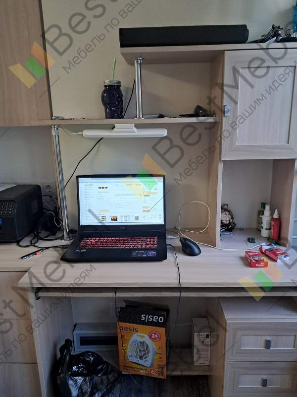 Представляем Вашему вниманию компьютерный стол Млайн 37. Дизайн этого стола подойдет для ценителей минимализма в интерьере. Изделие идеально подойдет для рабочего уголка или даже для кабинета. Не броский дизайн не будет отвлекать Вас от работы. Стол имеет 3 выдвижных ящика, открытую нишу над ящиками для папок и мелких предметов, полку под системный блок, выдвижную панель для клавиатуры. Над столешницей возвышаются 2-х уровневые полки и распашной шкафчик. Купить это изделие можете у нас на сайте за пару кликов.
