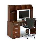 Если Вы ищете рабочий стол который совмещает в себе удобство, большую вместительность и многофункциональность, то Пентиум 4 идеальный вариант. Эта конструкция прекрасно впишется в интерьер. Изделие имеет 4 выдвижных ящика, нишу на мебельных роликах для системного блока и несколько полок сверху.