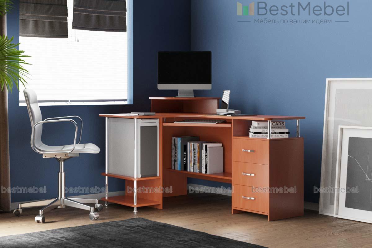 Красивая модель углового стола имеет современный вид и при этом он очень удобный и функциональный. Красивая форма столешницы, оригинально выполненная полка для монитора и интересная фурнитура придают столу привлекательность. Компьютерный угловой стол С224 БН представляет собой удобную конструкцию с боковой открытой полкой для системного блока и закрытой тумбой с выдвижными ящиками. Заказать такую модель можно для домашнего пользования или для офисного работника.