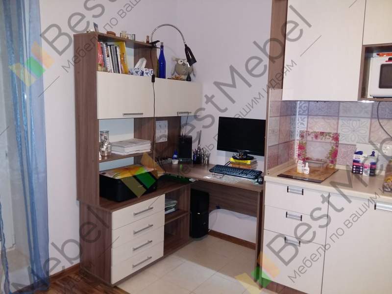 Очень долго подбирала стол, т.к. это главное для меня рабочее место, тем более надо было все продумать, поскольку у меня маленькая квартира-студия. По эргономичности все отлично, достаточно полочек и ящичков, где можно хранить все документы, даже принтер хорошо вписался. Минус только что системный блок немного выпирает, хоть я и мерила все по сто раз... и столешница если бы была поглубже было бы удобнее, но это скорее уже мои личные пожелания, в целом отличный стол. Особенно порадовала возможность выбора цвета, и так уж совпало, чисто случайно, цвета подбирала на глаз, чтобы хоть немного сочеталось с кухней что стоит рядом, в итоге, как видно на фото, цвет один в одни) Хотя производители разные и даже названия этих цветов разное.