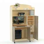 Компьютерный стол-трансформер Берта 4 BMS с древесным фасадом поможет обустроить комфортное рабочее место даже в малогабаритных помещениях. В сложенном виде модель с открытыми верхними полками и закрывающимися на ключ распашными отделениями может выполнять функцию шкафа и разместить канцелярские мелочи, книги и документы. Откидная столешница с опорными створами без труда превращает шкаф в удобный компьютерный стол. Купить компьютерный стол-трансформер Берта 4 BMS приглашаем в наш интернет-магазин с выбором цвета и фурнитуры.