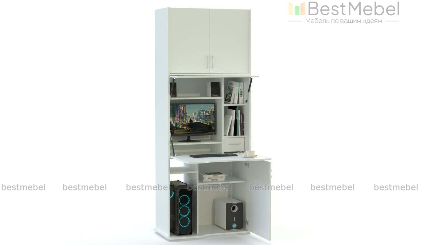 Компьютерный стол-трансформер Мартина 5 BMS отличается небольшой шириной и вместителен за счет высоты. При помощи откидной столешницы распашной шкаф легко трансформируется в рабочее место. В нижней части модели располагаются ниши для документов и системного блока, а в верхней – подставка для монитора, боковой стеллаж и книжные полки за распашными дверцами. Купить компьютерный стол-трансформер Мартина 5 BMS вы сможете в нашем интернет-магазине с выбором фурнитуры и цвета по каталогу.