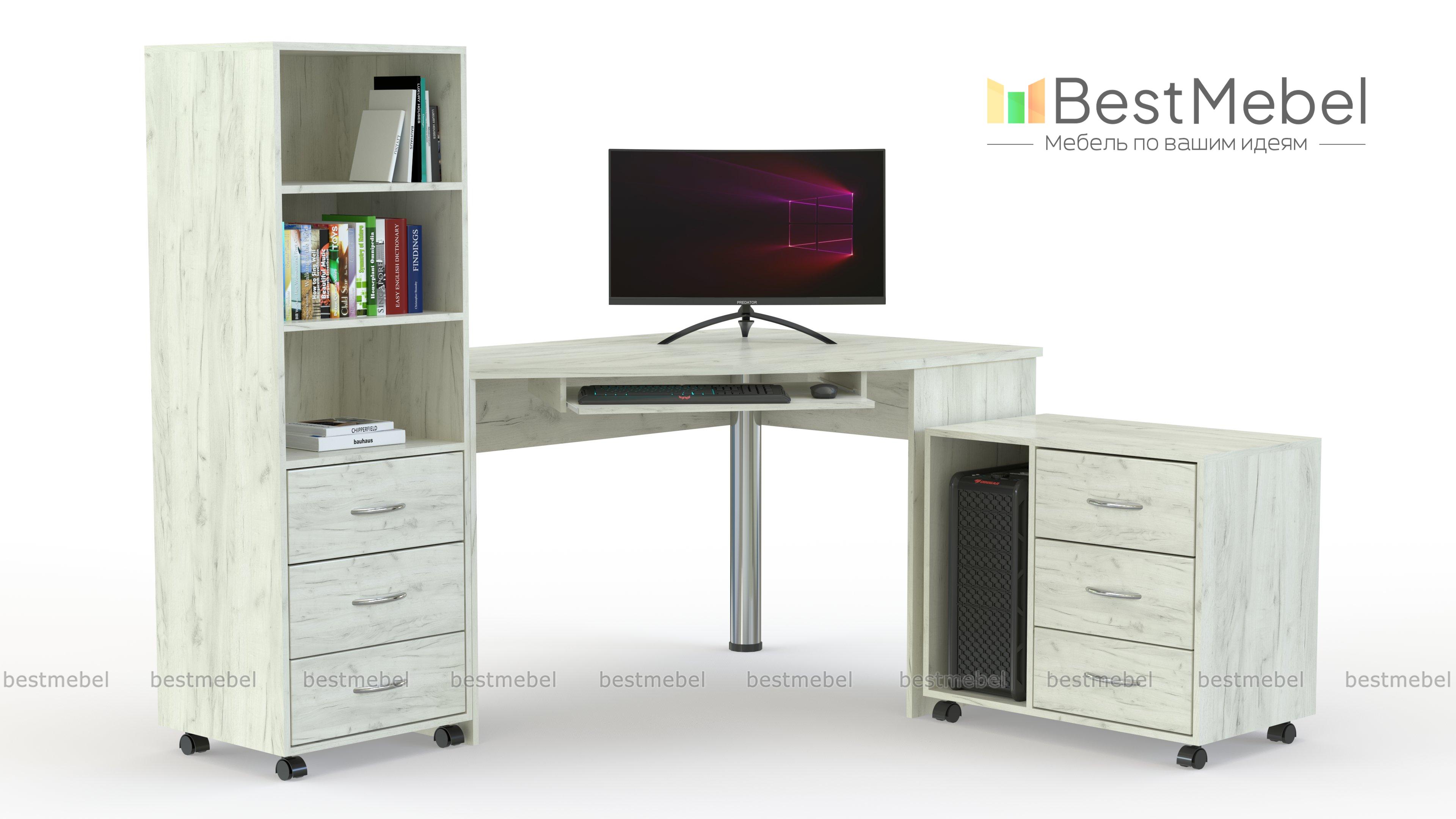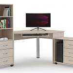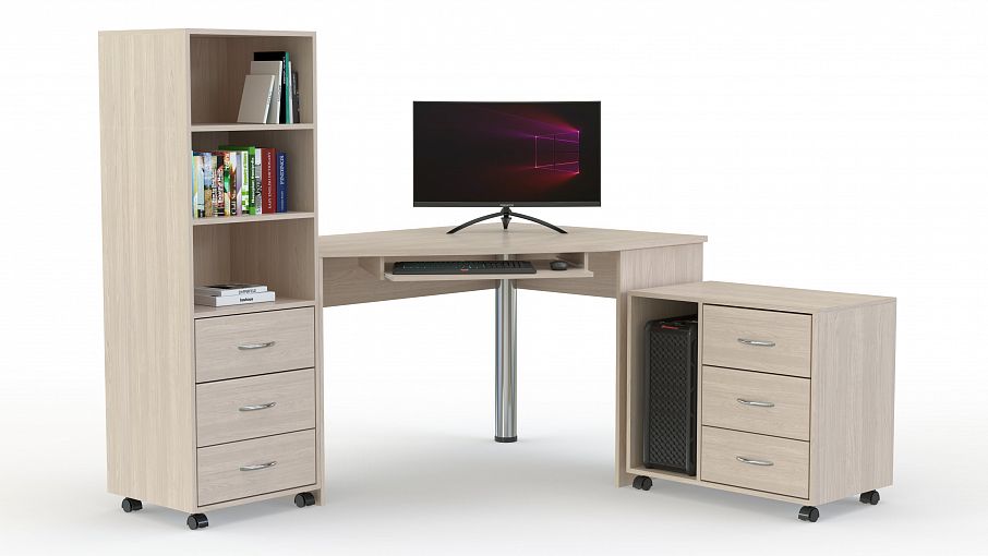Компьютерный стол Вероника 01 BMS представляет собой многофункциональную композицию для офисного или домашнего интерьера. Благодаря угловой форме модель рационально использует пространство, скругленная столешница дополнена выдвижной панелью под клавиатуру. Для максимально удобного размещения в зоне быстрого доступа папок, канцелярских принадлежностей, оргтехники и системного блока предусмотрены комбинированный стеллаж и приставная секция с тумбой на колесных опорах. Купить компьютерный стол Вероника 01 BMS приглашаем в наш интернет-магазин.
