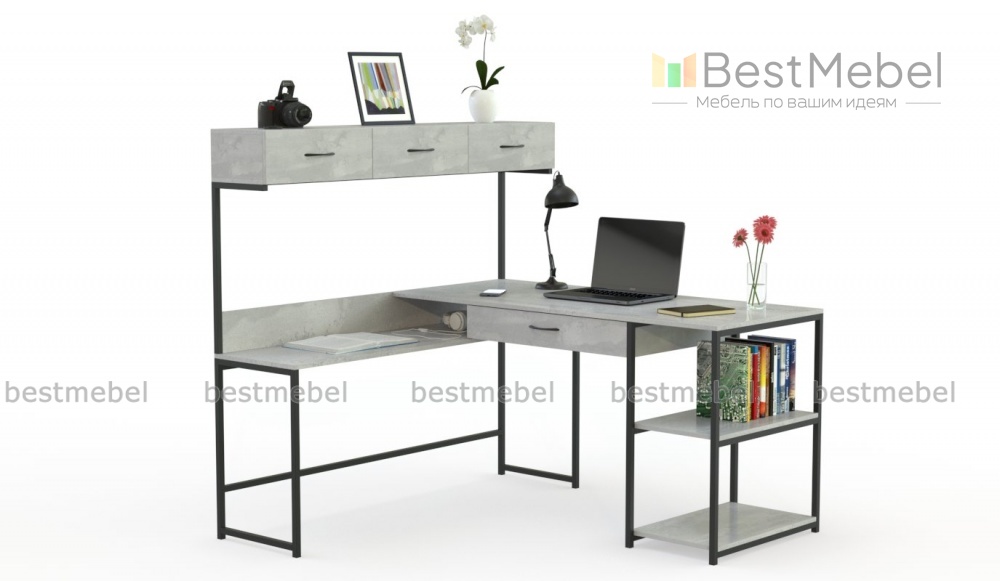 Стол компьютерный Фрайди 14 BMS – это многофункциональная модель, которая станет отличным решением для габаритных помещений. Модель, изготовленная из высококачественной и износостойкой ЛДСП, выполнена в серых оттенках с трендовой имитацией бетонной поверхности. Две просторные столешницы позволят с комфортом расположиться во время учебы или работы, а открытые полки и вместительные выдвижные ящики решат проблему рационального использования свободного пространства. Купить стол компьютерный Фрайди 14 BMS с возможностью изготовления по индивидуальным размерам приглашаем в наш интернет-магазин.