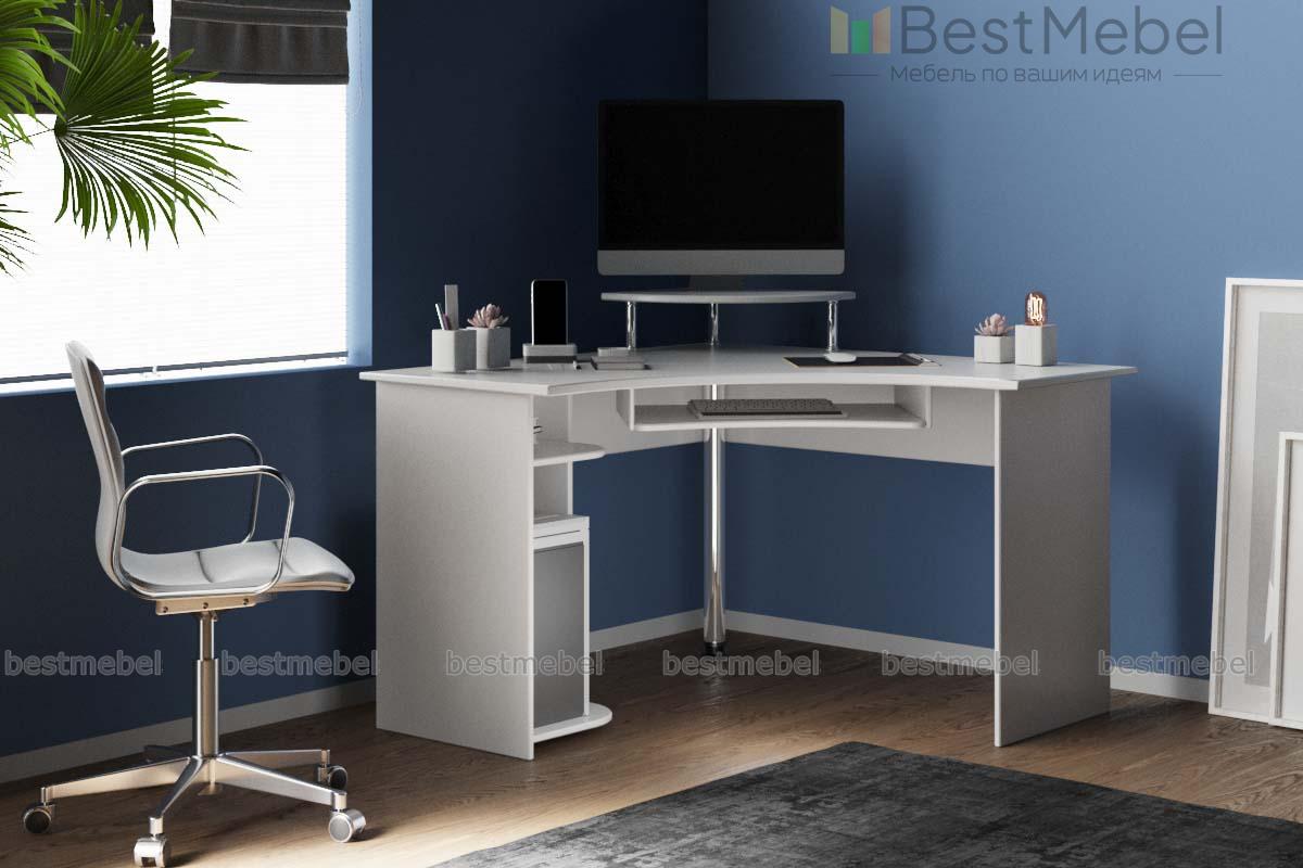 Стол угловой компьютерный Myau СУ-8 BMS выглядит очень легко, почти невесомо, благодаря белоснежному цвету, отсутствию тумбы и многочисленных отделений. Но он не утрачивает от этого своих высоких потребительских свойств. На широкой столешнице найдется место для различных документов, установки принтера, сканера, факса. Монитор уютно устроится на специальной подставке, а клавиатура найдет свое место под рабочей зоной на выкатывающейся полочке. Системный блок будет покоиться в хорошо вентилируемом отсеке, специально оборудованном внизу модели. Никелированные трубки, примененные для поддержки одного из углов столешницы и подставки монитора, придают изделию стильный вид. Заказать удобный в использовании, качественный и совсем недорогой стол вы можете на нашем сайте.