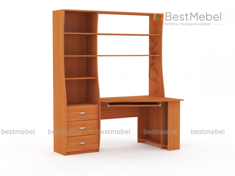 Несмотря на свое прямое предназначение, стол компьютерный СК-4 может стать отличным местом для размещения сувениров, книг, канцелярских товаров и других предметов. Причина этому – большое количество просторных вместительных элементов. Здесь также есть все необходимое для компьютера: выдвижная подставка под клавиатуру, секция для системного блока и дополнительные полки для оргтехники. Заказать стол компьютерный СК-4 можно в нашем интернет-магазине.
