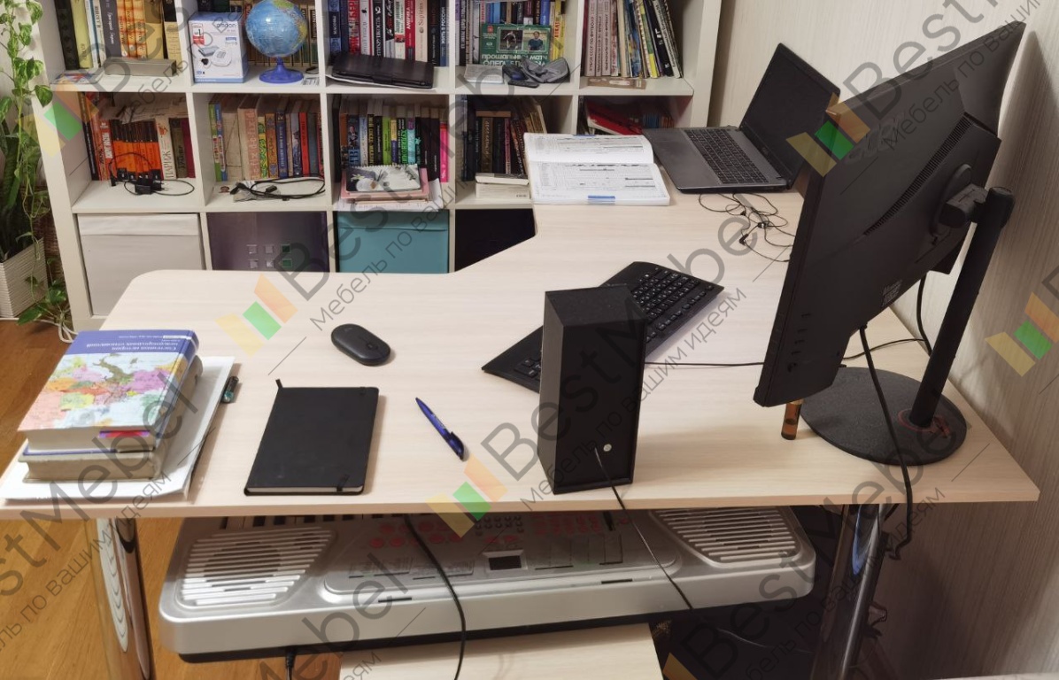 Наконец дошли руки до отзыва. Стол был куплен еще в январе этого года, собирала сама в одиночку, ну кот еще помогал, как мог)), сложностей не возникло, разве что шуруповерт был бы не лишним, но и так нормально. За все время использования никаких нареканий, стол крайне удобный, для тех кто дома по долгу сидит за компьютером и порой хочется вытянуть ножки)))Хочу выразить огромнейшую благодарность за терпение, учатие и содействие отделу проектирования BestMebelShop, поименно увы не знаю кто помогал, но все пожелания были учтены и размеры полностью соответствуют заявленному мною макету, что для меня было критично поскольку живя в квартире-студии мебель размещается по принципу "тетриса" ни 1 кв.см. не должно зазря пропадать! Подставка под системный блок также удобна и проста в сборке, в любой момент можно подвинуть системник, если нужно убраться или что-то переключить, а не сгибаться в три погибели и лезть под стол.)