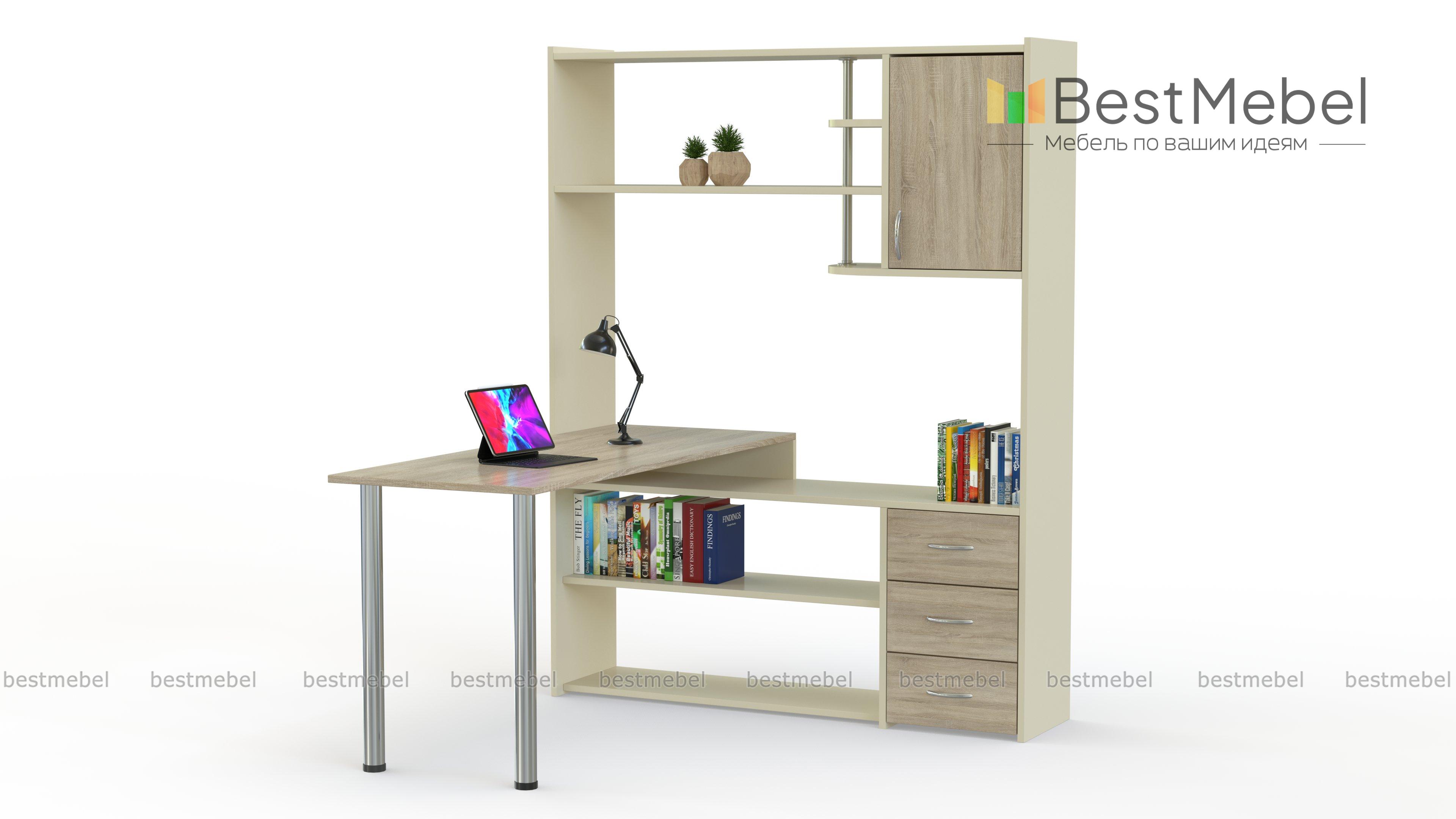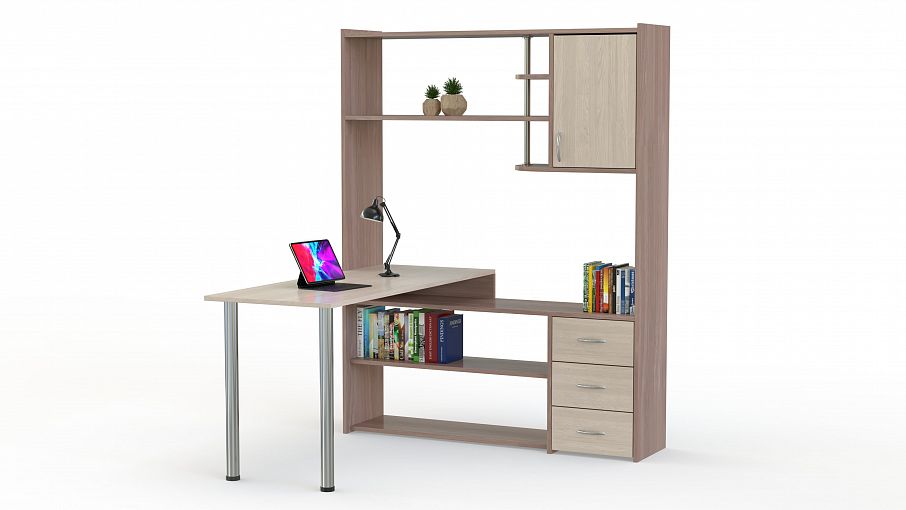 Угловой компьютерный стол Дональд-23 BMS подходит для зонирования и позволяет разместить в зоне быстрого доступа необходимые для работы или учебы материалы. Прямоугольная столешница, удобная для письма и работы за компьютером, совмещена с многофункциональным стеллажом. Открытые полки, ниши, выдвижные ящики и распашное отделение помогут систематизировать хранение папок, книг, канцелярских принадлежностей и установить оргтехнику. Купить угловой компьютерный стол Дональд-23 BMS недорого приглашаем в наш интернет-магазин.