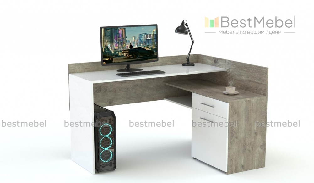 Угловой компьютерный стол Мен BMS дополнит ультрасовременные интерьеры в стиле минимализм или хай-тек. Модель отличают характерные геометричные формы и эффектное сочетание белого с имитацией поверхности бетона. Угловая композиция объединила прямоугольную столешницу, открытые полки и тумбу с выдвижным ящиком и распашным отделением для канцелярских принадлежностей, а широкая задняя панель защитит мелкие вещи от падения. Купить угловой компьютерный стол Мен BMS вы сможете на сайте нашего интернет-магазина.