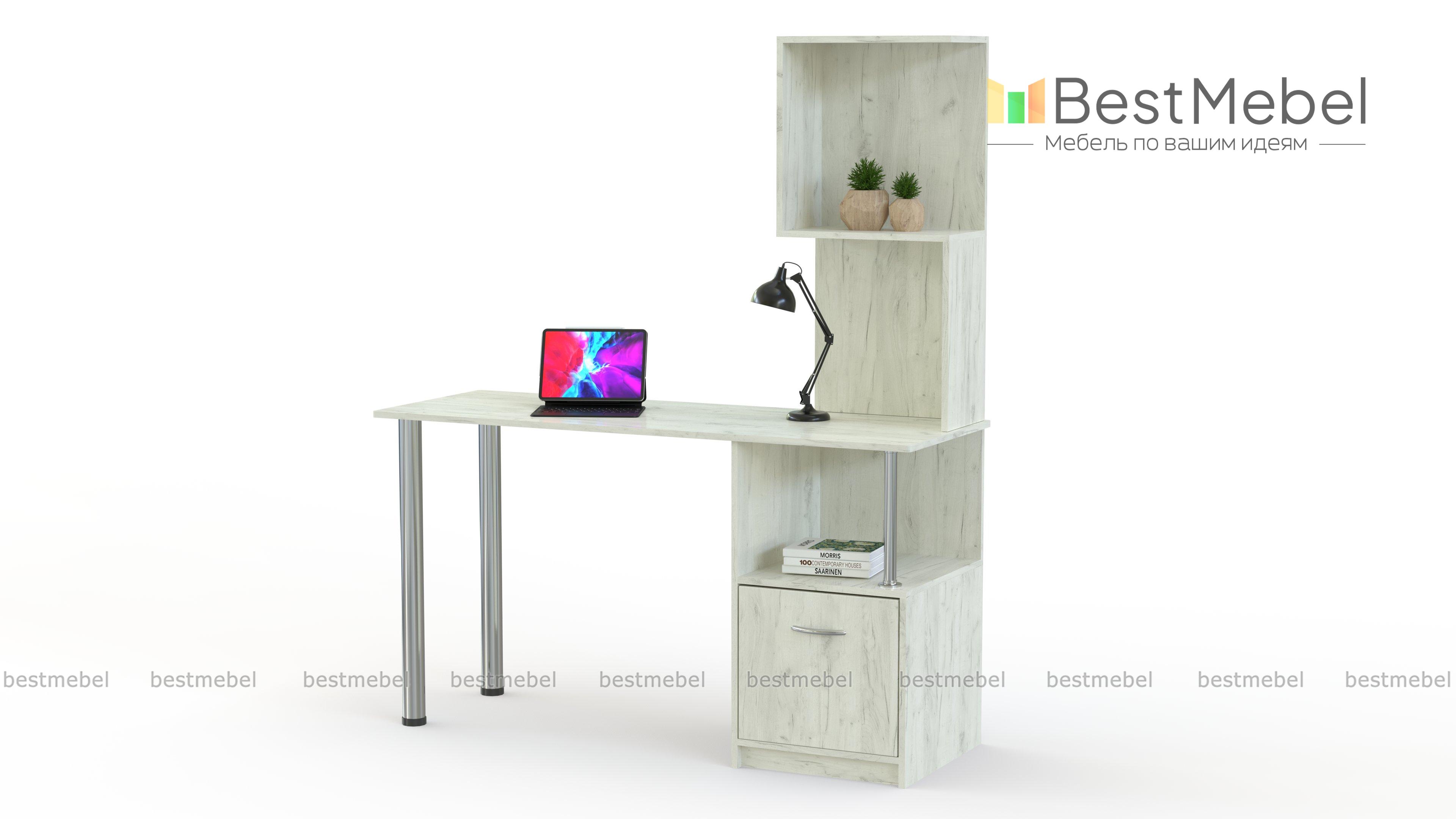 Письменный стол Джем-66 BMS будет актуален в небольших помещениях, где важна экономия полезной площади. Компактная модель оборудована прямоугольной столешницей, тумбой с нишей и ящиком и надстройкой с открытыми полками для папок и книг. Благодаря лаконичному дизайну и продуманной конструкции стол легко вписывается в современный интерьер и занимает минимум места. Купить письменный стол Джем-66 BMS по доступной цене вы сможете в нашем интернет-магазине.
