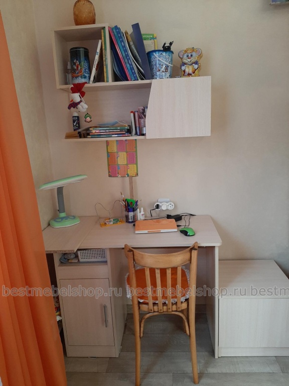 Заказ 00000438771. Присмотрела этот стол у другого производителя. Но там был только один вариант расцветки. И он не подходил по дизайну к другой мебели. А здесь и цвет нужный можно выбрать, и размеры. Стол для сына-школьника. Отличный! Не громоздкий, но и не маленький. Сейчас ребенок дистанционно за ним занимается. И ноутбук помещается, и тетрадки.