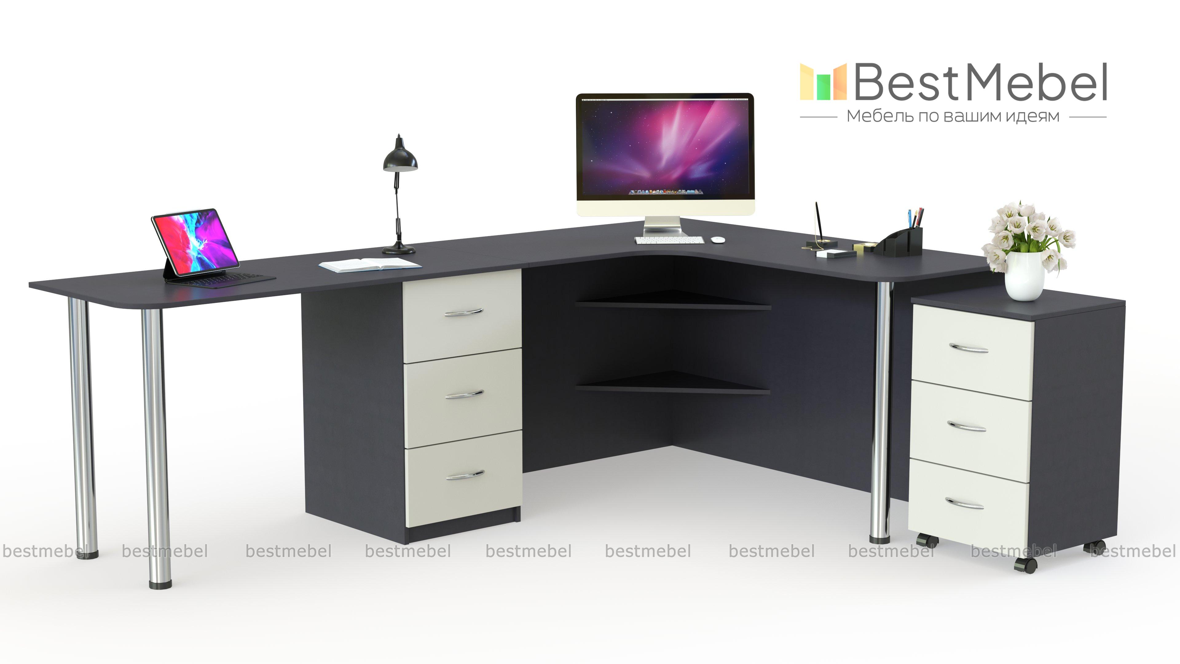 Угловой письменный стол для двоих Виктория 17 BMS сочетает в себе практичную конструкцию, современный дизайн и доступную цену. Модель позволит выгодно использовать угловое пространство и сэкономить полезную площадь комнаты. Устойчивый благодаря регулируемым опорам стол имеет просторную рабочую поверхность, дополнен стационарной и мобильной тумбами, а также открытыми нижними полками. Купить угловой письменный стол для двоих Виктория 17 BMS вы сможете в нашем интернет-магазине.