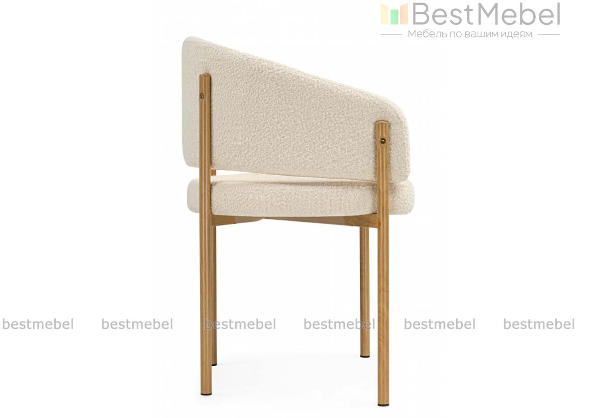 Стул на металлокаркасе Janin - удобная и долговечная модель в актуальном дизайне. Изящная спинка плавно переходит в удобные подлокотники, выполненные из плотной ткани букле нейтрального оттенка. Металлические ножки с имитацией дерева делают силуэт легким, а конструкцию надежной, для защиты пола предусмотрены накладки. Купить стул на металлокаркасе Janin для меблировки гостиного интерьера или столовой вы сможете на сайте нашего интернет-магазина.