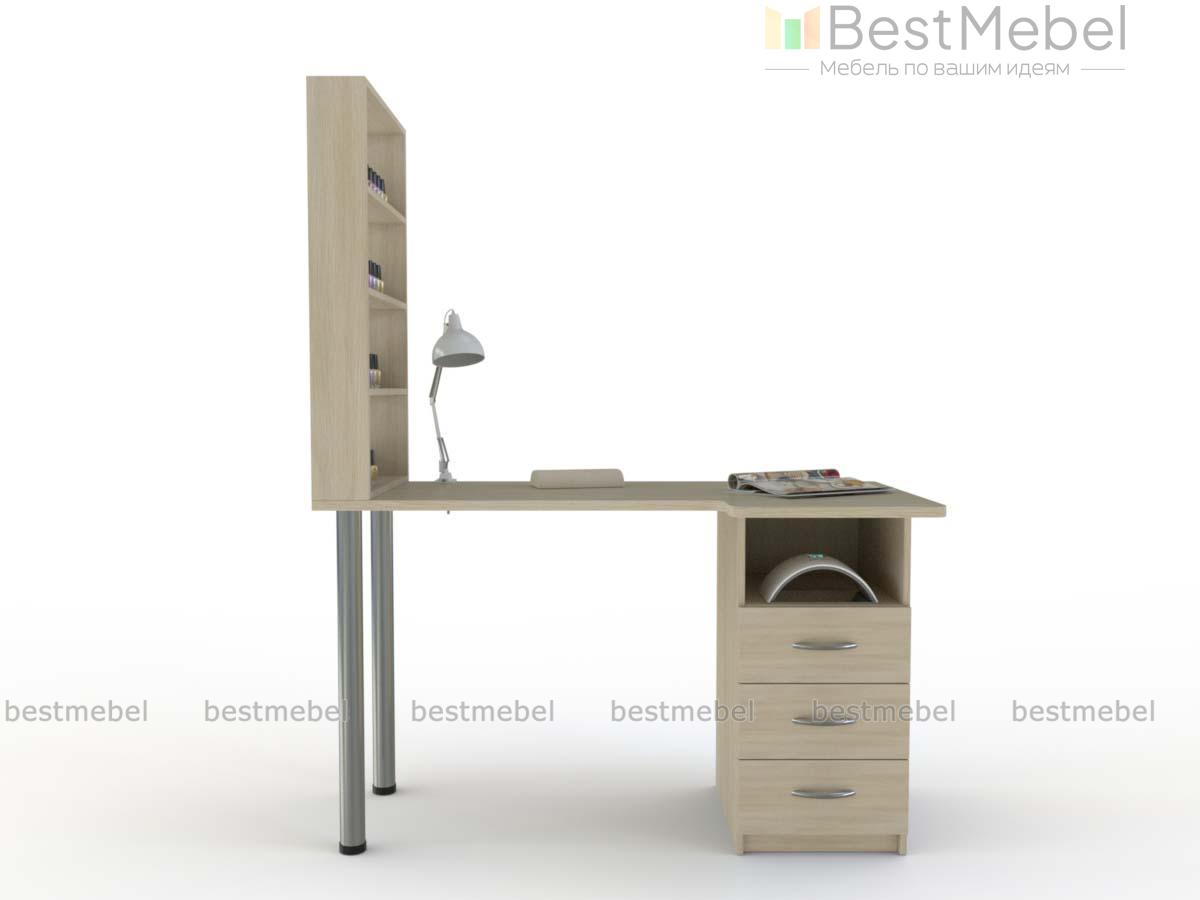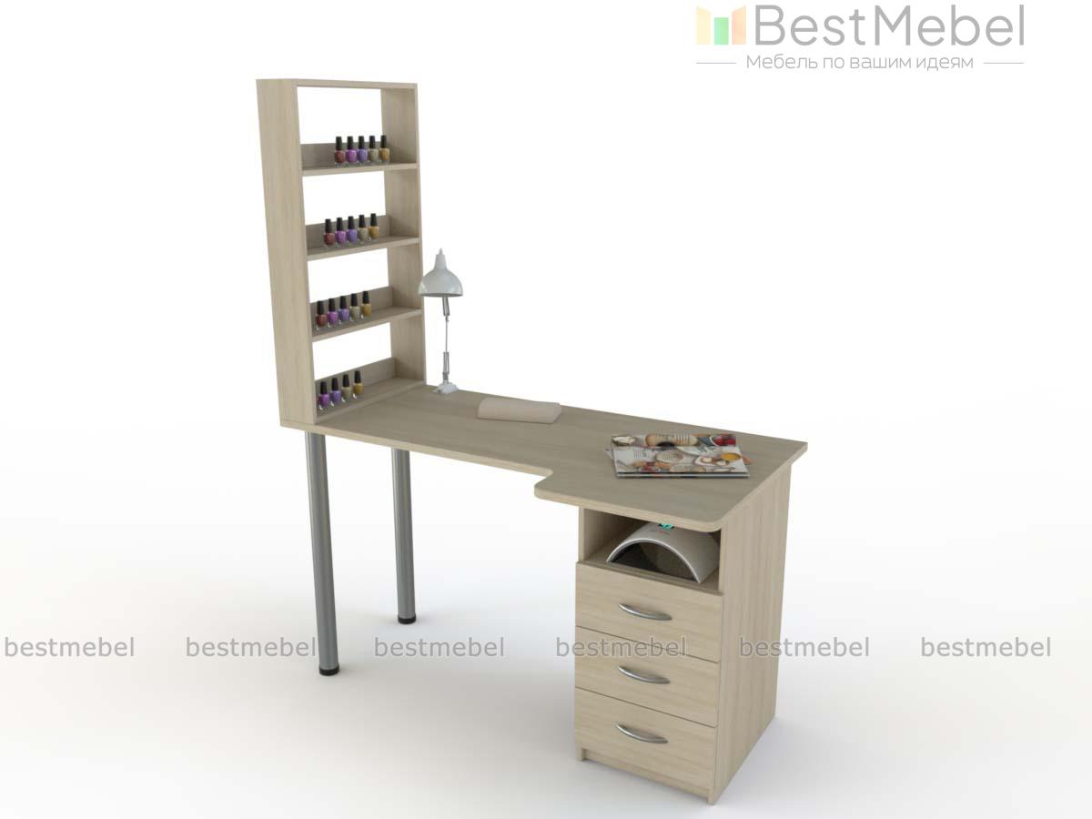 Маникюрный стол Джули BMS выгодно отличается компактными размерами, функциональностью и доступной ценой. Модель оборудована просторной столешницей с эргономичным вырезом и тумбой с нишей и тремя выдвижными ящиками для размещения оборудования, инструментов и расходных материалов. Столешница, дополненная боковым стеллажом с полочками под лаки, устойчива благодаря регулируемым металлическим опорам. Купить маникюрный стол Джули BMS, выполненный в светлых древесных тонах, приглашаем к нам в интернет-магазин.