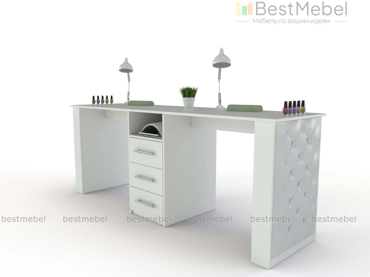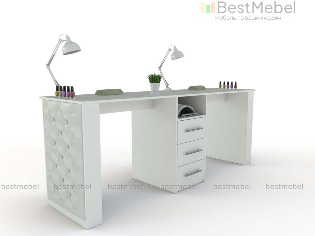 Маникюрный стол Роузи BMS, декорированный экокожей с каретной стяжкой, станет частью меблировки элегантного современного салона. Модель проста по форме и удобна для одновременной работы двух мастеров, позволяя разместить на просторной столешнице необходимое оборудование и мелкие вещи. По центру стола располагается разделительная тумба с нишей и тремя выдвижными ящиками. Купить маникюрный стол Роузи BMS приглашаем выгодно в наш интернет-магазин, подобрав оптимальное цветовое решение.