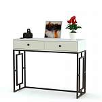 Стол консольный Юлия 10 BMS выполнен из ЛДСП нейтрального платинового оттенка и располагается на металлическом каркасе с фигурными боковинами. Модель оборудована просторной прямоугольной столешницей и двумя выдвижными ящиками для удобного хранения уходовых средств. Элегантный столик станет украшением модного лофта и будет долго радовать вас эстетичным видом благодаря использованию износостойких материалов. Купить стол консольный Юлия 10 BMS вы сможете на сайте нашего интернет-магазина.