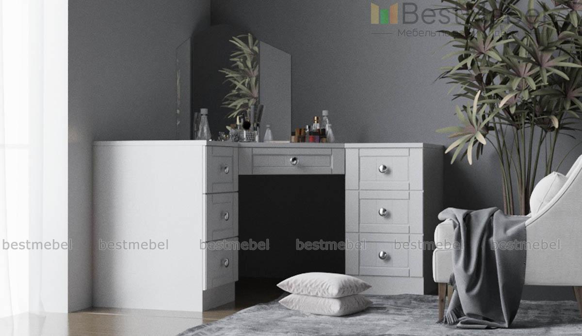 Трюмо для спальни Чара МДФ BMS будет незаменимо в помещениях небольших или нестандартной планировки. Угловая модель с настольным трехстворчатым зеркалом экономно использует пространство, а белый цвет делает спальню визуально светлее. Трюмо оборудовано просторной столешницей, на которой смогут разместиться мелкие вещицы, центральным выдвижным ящиком и двумя тумбами. Купить трюмо для спальни Чара МДФ BMS и сделать уход за собой максимально приятным занятием вам поможет наш интернет-магазин.