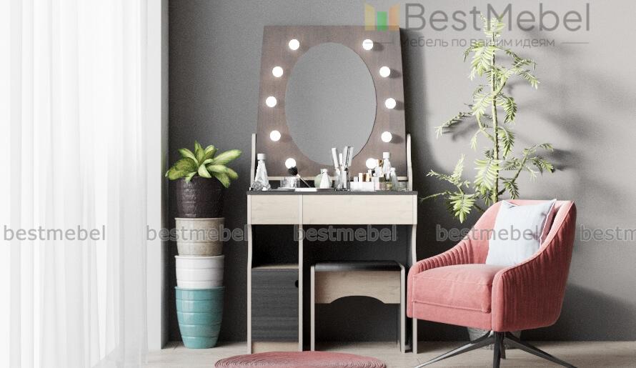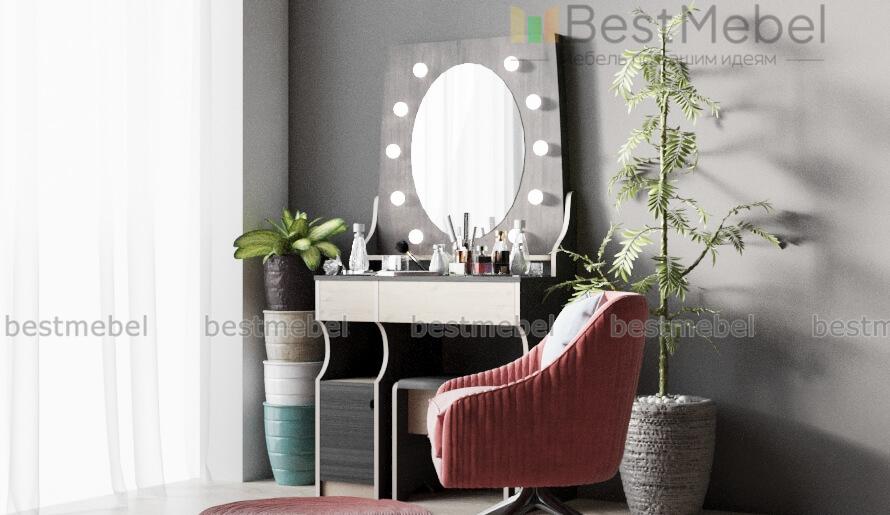 Туалетный столик Визаж № 1 BMS – элегантная модель с фигурно вырезанными боковинами для современного или классического интерьера. Компактный по размеру, столик легко впишется даже в небольшие помещения и сделает комфортнее уход за собой. Удобная система хранения для разнообразных мелочей включает в себя выдвижные ящики, ниши, распашное отделение и открытую полку, а панель с овальным зеркалом дополняют светодиодные лампочки. Купить туалетный столик Визаж № 1 BMS недорого приглашаем к нам в интернет-магазин.