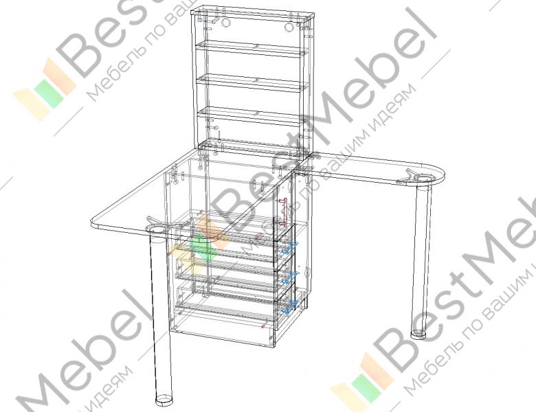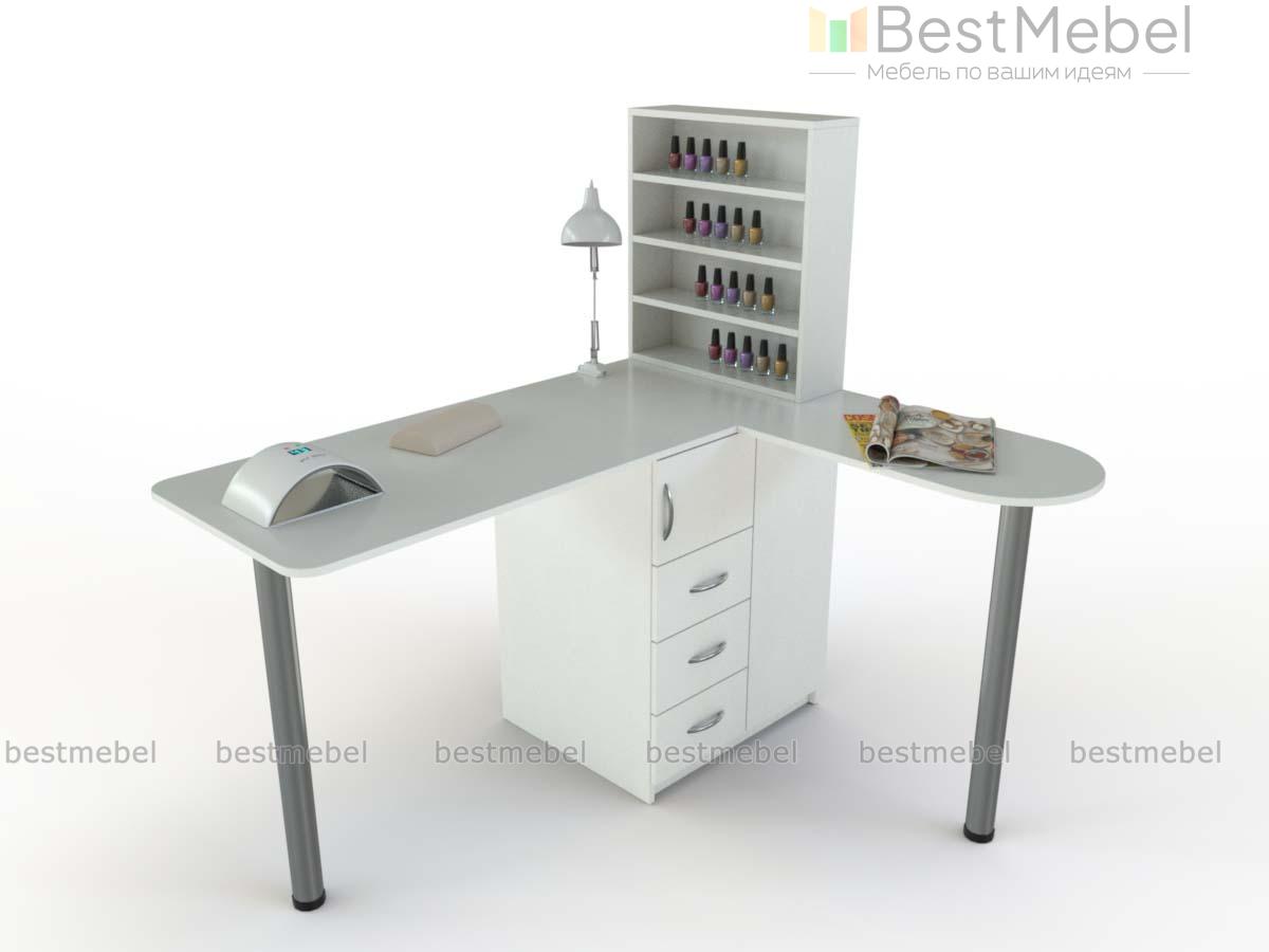 Угловой маникюрный стол Ора BMS поможет с максимальной эффективностью использовать пространство и сэкономить на лишней мебели. Модель оборудована двумя столешницами – прямоугольной основной и дополнительной скругленной, и тумбой с ящиками, распашным отделением и выдвижной секцией для хранения расходных материалов и инструментов. Под лаки предусмотрен вместительный стеллаж на три полки. Купить угловой маникюрный стол Ора BMS для меблировки салона вы сможете в нашем интернет-магазине по отличной цене.