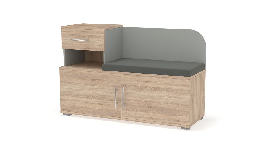 Тумба Аврора BMS – практичное дополнение меблировки прихожей. Компактная и функциональная, тумба оборудована просторным распашным отделением с полками, нишей, выдвижным ящиком и удобна для хранения сезонной обуви, средств по уходу и аксессуаров. Комфортным процесс надевания обуви сделает сиденье в мягкой тканевой обивке и высокая скругленная спинка. Износостойкие поверхности надолго сохранят эстетичный вид и не требовательны в уходе. Купить тумбу Аврора BMS приглашаем недорого в наш интернет-магазин.