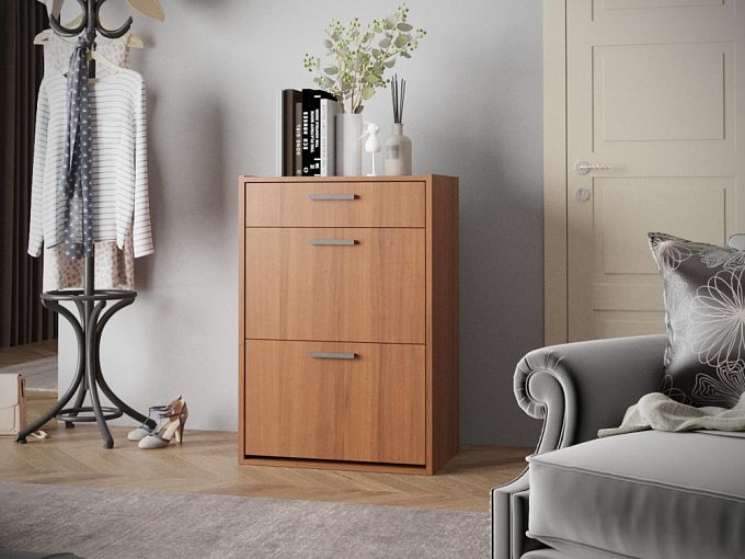 Тумба для обуви Скилл 2 BMS выгодно отличается компактными размерами, вместительностью и доступной ценой, а широкий выбор цветовых решений делает модель универсальной. Тумба оборудована двумя просторными откидными отделениями под обувь и удобными для хранения мелочей столешницей и выдвижным ящичком. Лаконичные фасады древесных тонов дополнены ручками-скобами. Купить тумбу для обуви Скилл 2 BMS для комфортного интерьера приглашаем недорого в наш интернет-магазин.