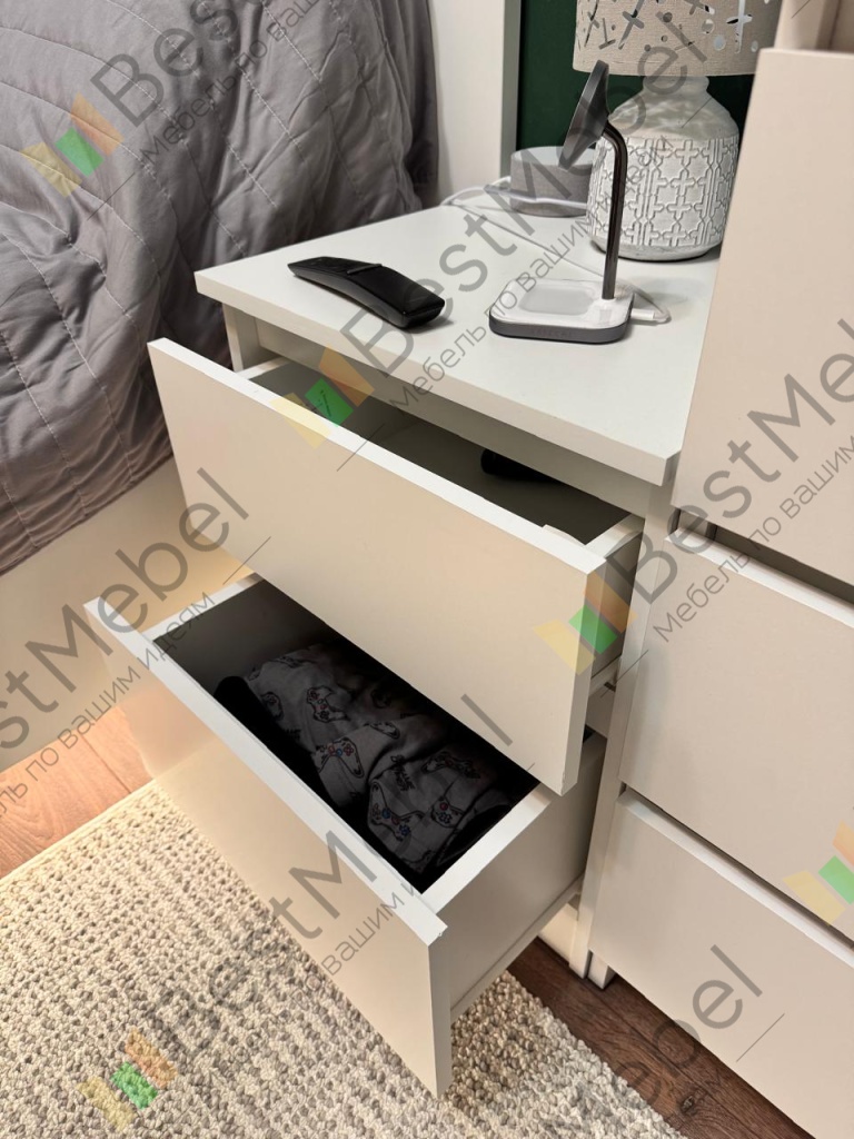 Заказывалась тумба прикроватная Куллен Kullen 3. Собралась без проблем, все устраивает. Заказ 00000207705, 00000207706. Тумбы заказывались под мои размеры, так как не смог найти в мебельных магазинах подходящих габаритов. После сборки думал будут проблемы с наклейками на каждой детали - отклеил без проблем и следа не осталось. Тумбами доволен.