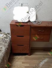 Я обратилась в магазин BESTMEBELSHOP, потому, что мне понадобилась тумбочка по моим размерам. На сайте я выбрала из дешевых 2 штуки и изменила их размер. На фото видно, какая была тумбочки "Либерти" до изменений. Я значительно увеличила размер. Цена при этом не увеличилась намного. Далее, в разговоре с менеджером я попросила убрать пространство между полом и дном, то есть опустить ее на пол и утопить ящики. Он нарисовал эскиз оперативно. Жаль, забыла его имя: очень понятливый парень! Таких тумбочек я заказала 2 одинаковые .Заказ 00000563401, изделие ЭСКИЗ №00000563401 Тумба прикроватная Либерти ТД-297.03.02 BMS (651х451х645)Ждала я 2 или 3 недели( было некритично), но в срок мне позвонили из доставки. Я не знаю конкретно, откуда их везли. Договорились на поздний вечер, но в результате уже утром их привезли. НО за то, что опоздали, не взяли деньги за занос в квартиру. Спасибо ребятам, видно, что уставшие.Сборка была качественная: все детали на месте, разметка совпала, все обозначены наклейками. ( потом эти наклейки размачивала тряпкой, чтобы оторвать)Я довольна такой четкостью исполнения. Грамотно все сделали. Особенно мепеджер.