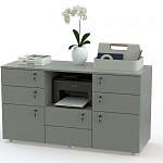 Тумба сервисная Оникс 3 BMS предназначена для размещения оргтехники, документов, расходных материалов и канцелярских принадлежностей. Модель оборудована широкой столешницей, нишей, шестью выдвижными ящиками, оснащенными замками, и двумя распашными отделениями. Тумба с гладким сплошным фасадом без лицевой фурнитуры выполнена из высококачественной ламинированной плиты и прекрасно вписывается в интерьер современного офиса. Купить тумбу сервисную Оникс 3 BMS вы сможете в нашем интернет-магазине с выбором цвета по каталогу.