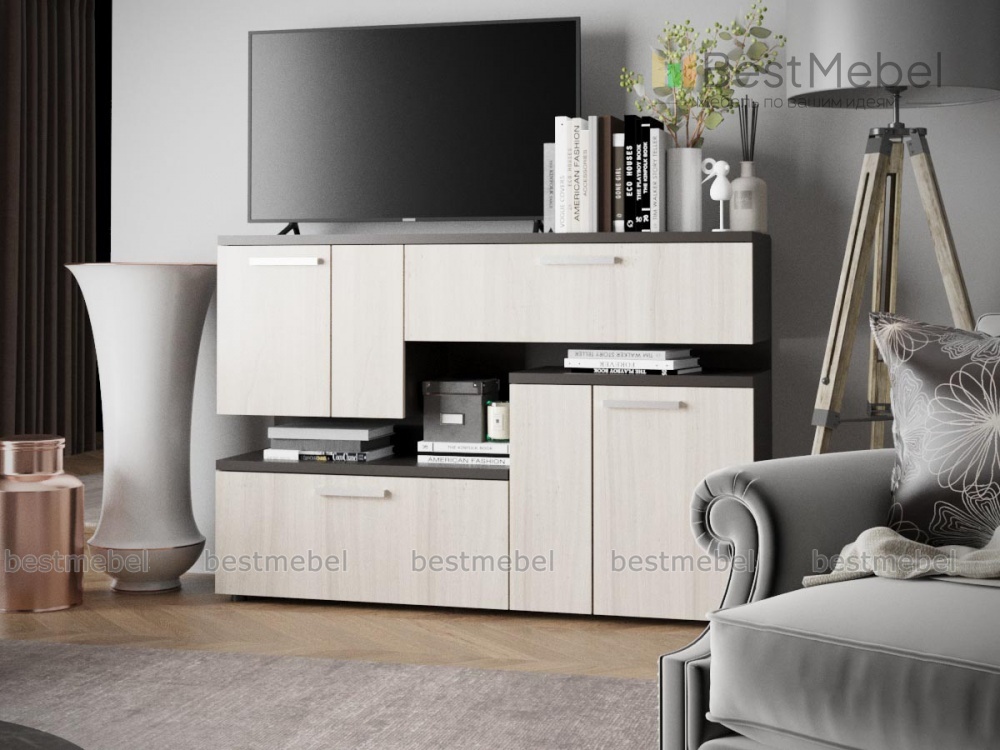 Тумба ТВ С-1 1400 BMS – вместительная модель оригинальной конструкции для современной гостиной. Практичная тумба оборудована просторной столешницей для ТВ или другой техники, распашными отделениями, отделением с откидной дверцей, выдвижным ящиком и нишами разной высоты. Несколько вариантов актуальных расцветок на выбор помогут вам оптимально вписать модель в интерьер. Купить тумбу ТВ С-1 1400 BMS по доступной цене вы всегда сможете в нашем интернет-магазине.