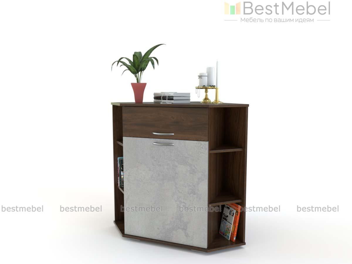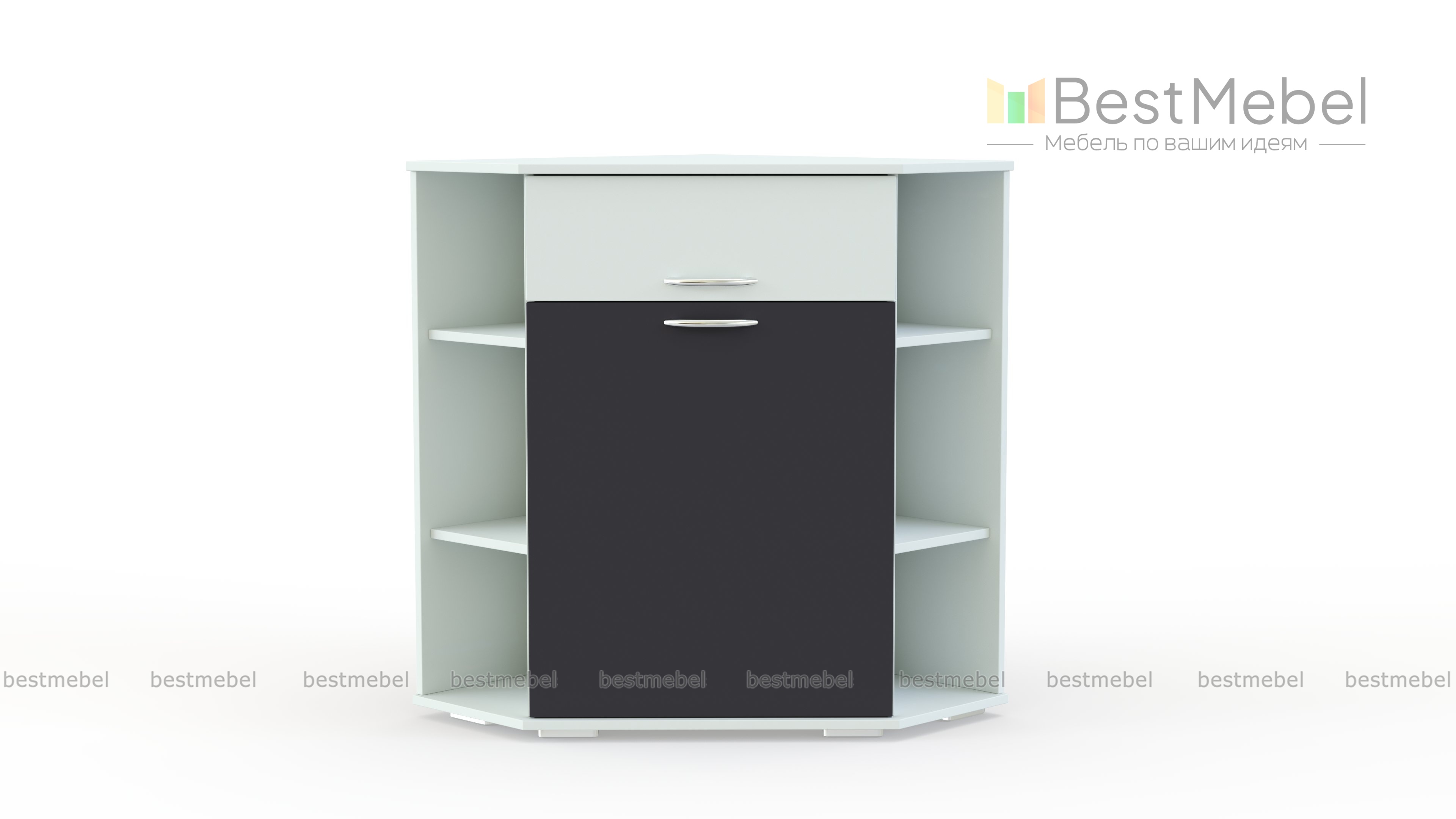 Тумба угловая Лайма BMS гармонично впишется в гостиные современного дизайна благодаря актуальному цветовому решению – светлые тона корпуса удачно сочетаются с фасадом в черном оттенке. Сэкономить полезную площадь комнаты поможет практичная форма, а вместительность обеспечат разноплановые отделения. Модель оборудована трапециевидной столешницей, выдвижным ящиком для мелочей, распашным отделением и боковыми открытыми полками. Купить тумбу угловую Лайма BMS приглашаем в наш интернет-магазин.