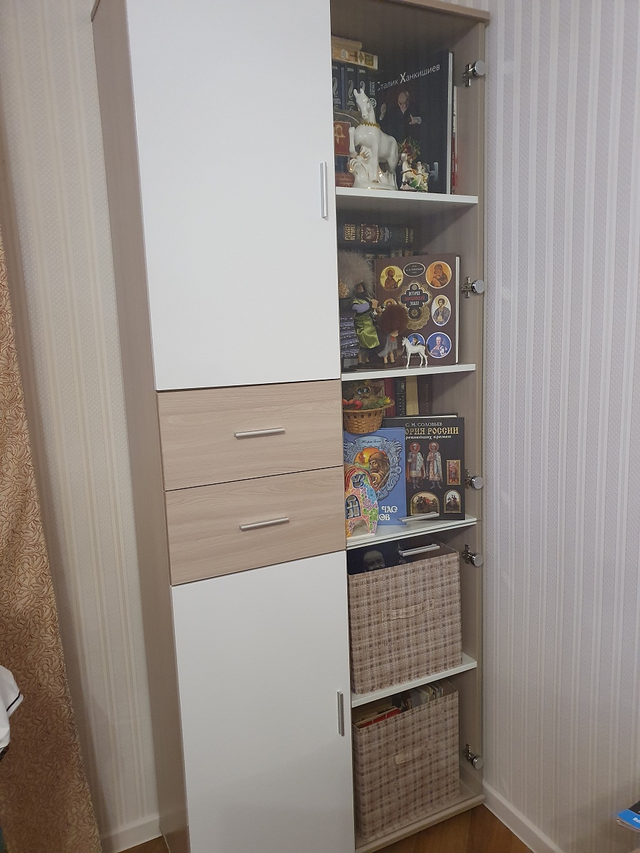 Отличный шкаф. Вместительный и смотрится очень легко в небольшой комнате. Качеством материала довольна.  При сборке тоже не было дефектов. Собирал сборщик от компании партнёра. Доставка в срок