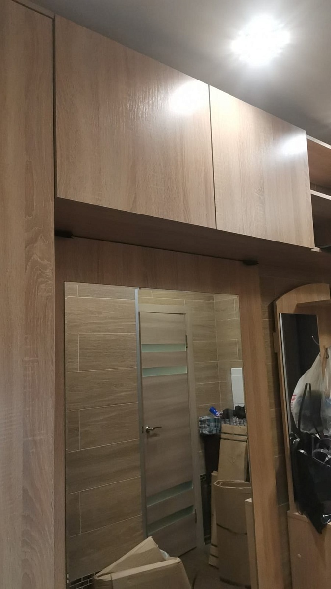 Заказ 00000937340 Эта замечательная антресоль завершила входную группу в прихожей маленькой студии. Очень бюджетно, быстро и качественно!