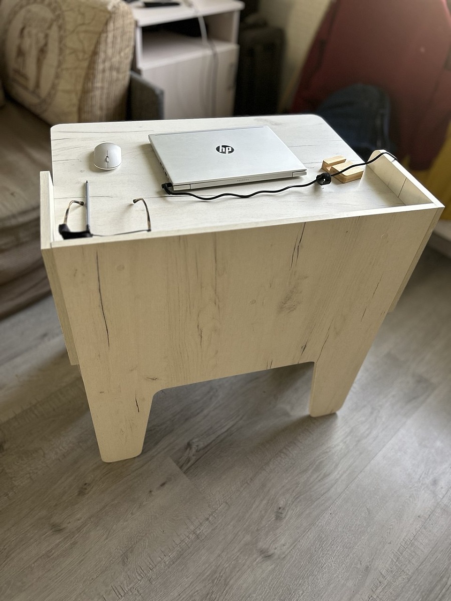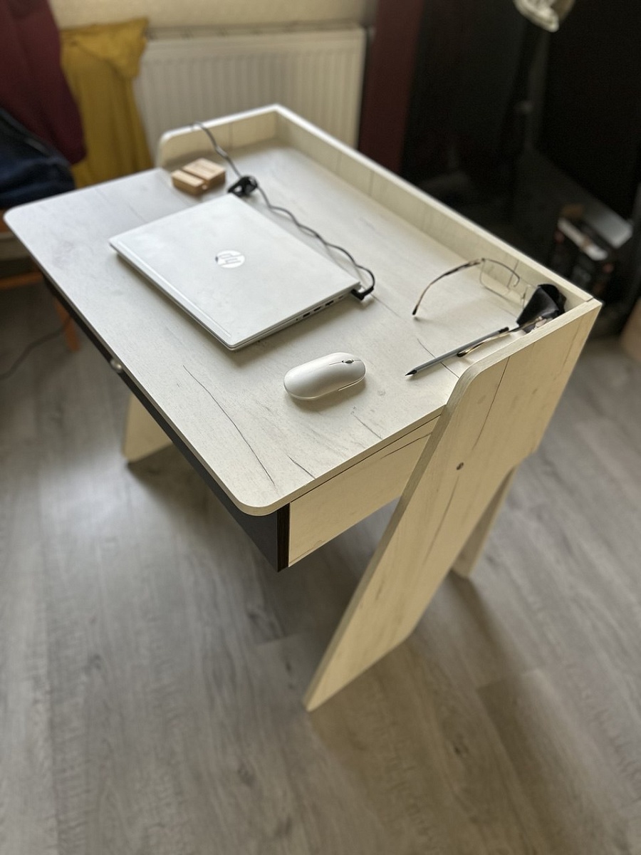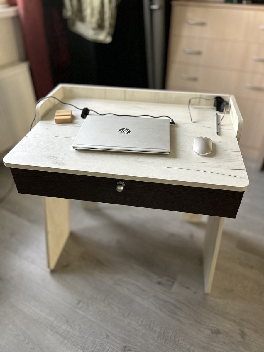 Заказал себе такой столик (заказ 00000938038), но немного шире стандартного. Очень доволен. Работать за ним удобно, а благодаря небольшим размерам и весу, его удобно переставлять, когда закончил работать.