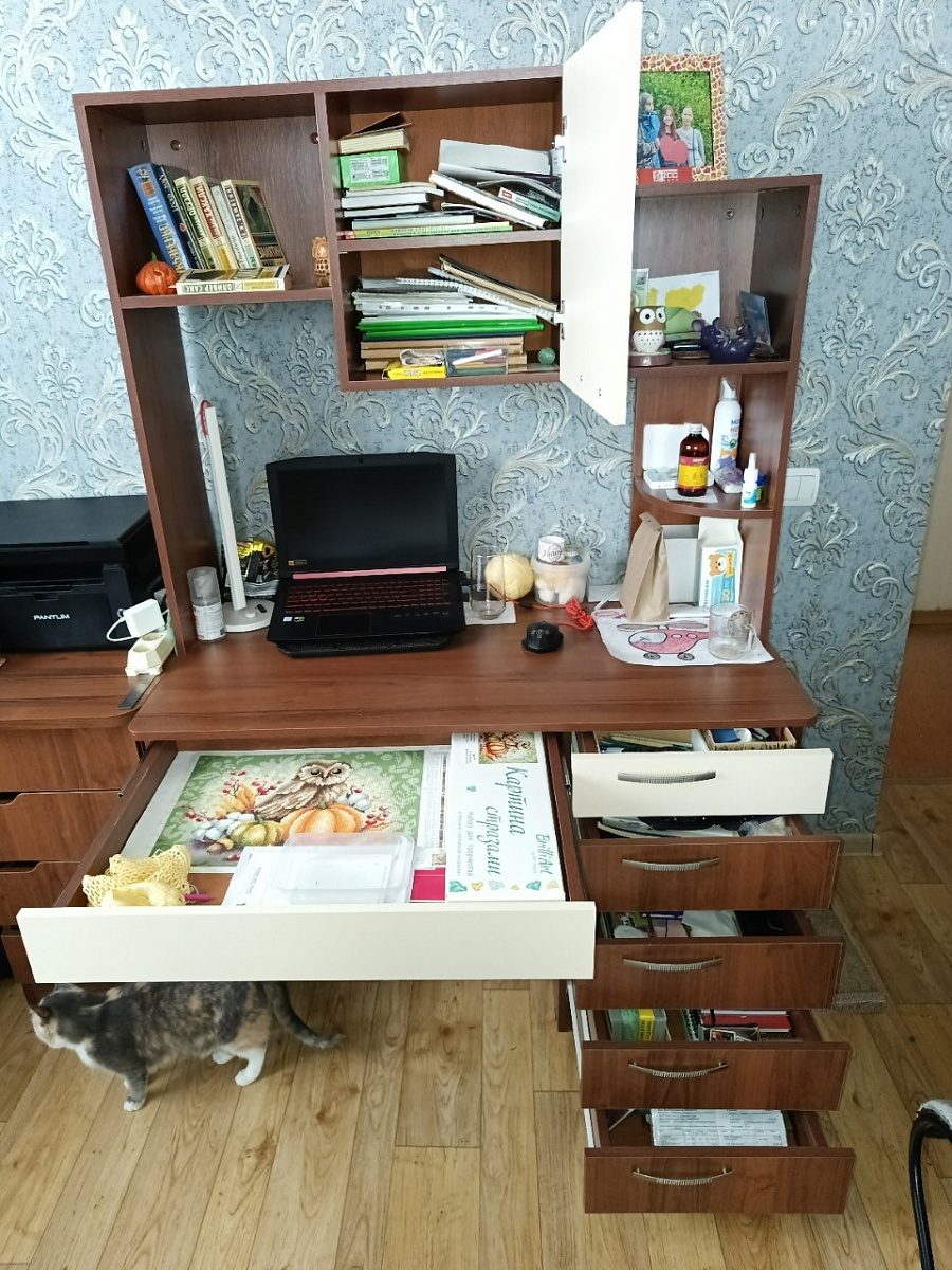 Вступление оставлю в отзыве к этому столу, но понятно что оно относится к обоим заказам (второй был компьютерный стол Форт-1 BMS) Часть написанного будет дублирована к второму столу.Сайт чудесный и работа менеджеров впечатляет - оформил заказ, на этапе перевода денег (не успел перевести) поступил звонок для уточнения деталей заказа/срока готовности и т.д. Мы с супругой были приятно удивлены! Обычно мало того что подождать надо, так и самостоятельно добиваться ответов. По поводу возможностей для пользователя изменить необходимые параметры мебели под себя - это как по мне основная фишка компании BestMebel. Заказ №1125132 оба стола были собраны 13.01.2025 и вот вам опыт использования:Превосходный стол, в сборке прост. Приобретался для супруги и он полностью удовлетворяет все её потребности. Большой выдвижной ящик под основой столешницы - просторный и в него прекрасно помещаются картины для творчества (для удобного хранения и быстрого доступа). Верх шкафа облюбовал кот, потому заставлять его есть смыл только тем у кого нет домашних любимцев стремящихся побыть "На высоте".Нюансы в сборке:- Есть небольшой зазор в "Столбике" с права, нам не критично, но зная многих людей которые из-за потёртостей любят хай поднимать - за такой изъян явно были бы в ярости.- Основная стола, большой ящик под столешницей - малость неприятно что отверстия под крепления были просверлены были ближе чем нужно из-а чего ящик имел зазор с основой стола в сантиметра 2 (просто просверлил подальше и всё стало "заподлицо" закрываться).- Не нюанс, а очевидное замечание о приятном. Петли к выше описанному большому ящику на порядок лучше чем стандартные. Имеют приятный ход и много заводской смазки.Как итог я буду заказывать мебель тут и дальше и уже рекомендовал своим близким.