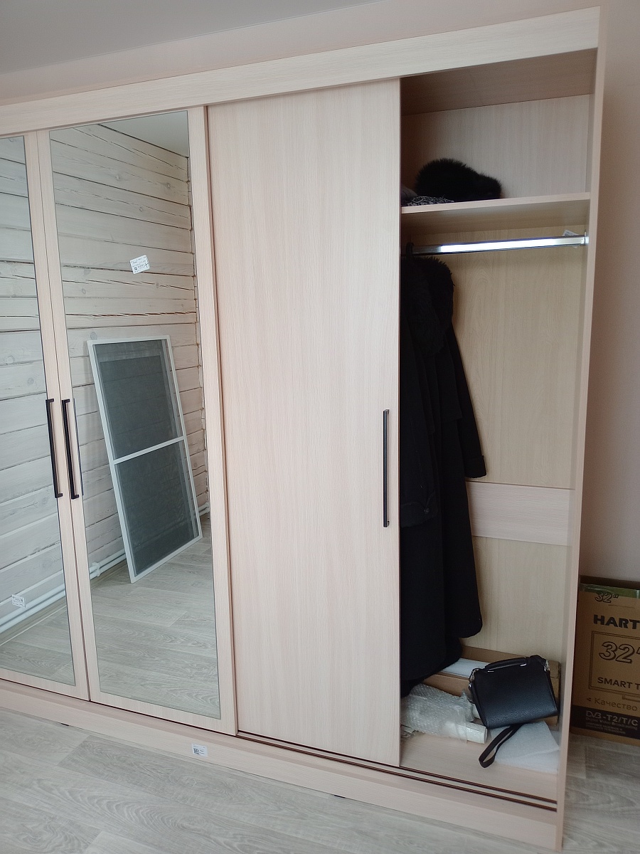 Заказ 00000932591. В январе заказывали шкаф-купе Торонто. Очень удобно, что на сайте можно подобрать шкаф под любую конфигурацию и любые размеры и цвет. Нам нужно было, чтоб он был максимально платяной. После заказа с нами связалась менеджер, уточнила детали, назначили дату доставки. Привезли вовремя. Шкаф выполняет свою функцию. Приобретали со скидкой, без скидки шкаф дороговат, если смотреть цена-качество. В целом работой магазина довольны.
