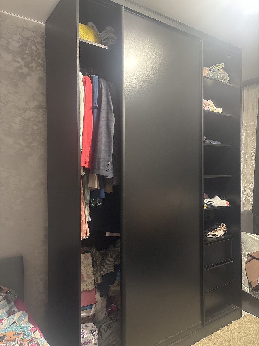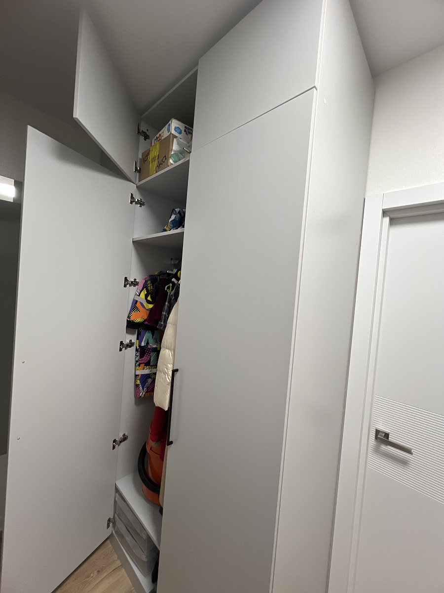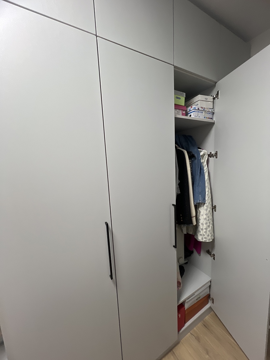 Заказ 00000907751. Это уже четвертый шкаф, заказанный здесь. Очень нравится, что можно выбрать мебель по своим параметрам. Я заказывала все шкафы в цвете "Белый-структура дерева". Ездила в шоурум и там выбрала именно этот цвет. Все шкафы муж собирал сам. Дверь с зеркалом мы поставили не по центру, а справа. Нам так удобнее. Качеством шкафов довольны. Самое главное выбирать толстую кромку. Получается дороже, но оно того стоит. Единственный минус - дверь с зеркалом очень тяжелая. Также мы заказали зеркало на боковину шкафа. Наполнение шкафа тоже выбрали в соответствии со своими нуждами. Также нужна было дополнительная штанга. Все пожелания магазином были учтены, подготовлены необходимые отверстия. Шкаф нам сделали за 4 дня