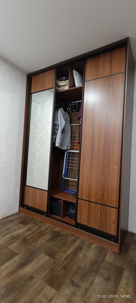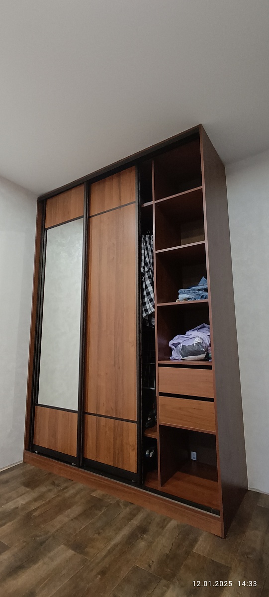 Заказ 00000927476 Шкаф-купе В-11 BMS (1800х2570х600) (Белье - Платяной отсек - Белье (4 ящика) (3)).Сделали заказ через сайт магазина, выбрали внешний вид шкафа, размеры которые нам были нужны(прописали в ручную, не стандартные шаблоны, а именно то, что нужно было нам), выбрали из предложенных вариантов наполнение шкафа, цвет и доп.аксессуары. Сделали заказ, на следующий день с нами связалась менеджер магазина и уточнила детали заказа, скорректировали заказ, и через несколько дней нам привезли шкаф. Собирали сами, все отверстия намечены, схему сборки приложили, все детали подписаны. Качество материалов хорошее, за приемлемую цены мы получили шкаф который хотели. Теперь стоит и на отведенном для него месте и радует своим функционалом.