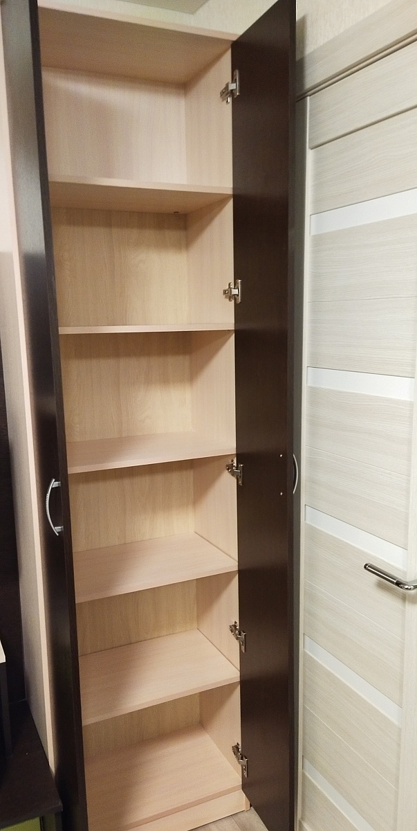 Выбрала два шкафа с разным наполнением в сером цвете, убрав декор. Небольшой косяк - не доложили заднюю стенку к одному шкафу- довольно оперативно довезли. Сами шкафы удобные и вместительные.
