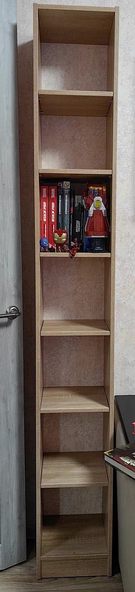 Хотел шкаф, но места мало. Нашёл на Ozon. Слегка выпивший, снял размеры. Шкаф пришёл — на место встаёт. А то, что не всё открывается, — это проблемы шкафа. Пришлось самому чуть‑чуть доработать, но это мой косяк. Шкафом доволен. Руководство по сборке почему‑то не открывается на компьютере; с телефона читать не очень удобно, но это не критично.