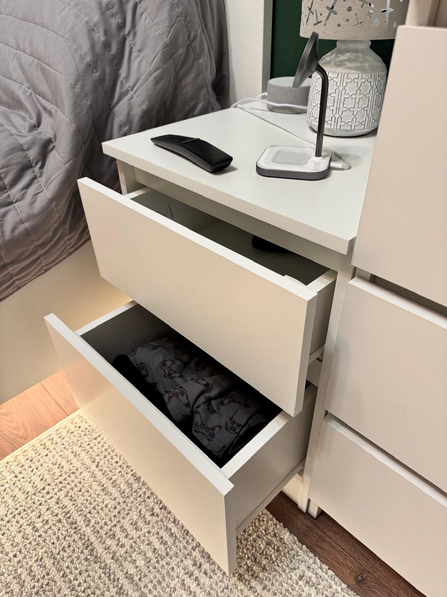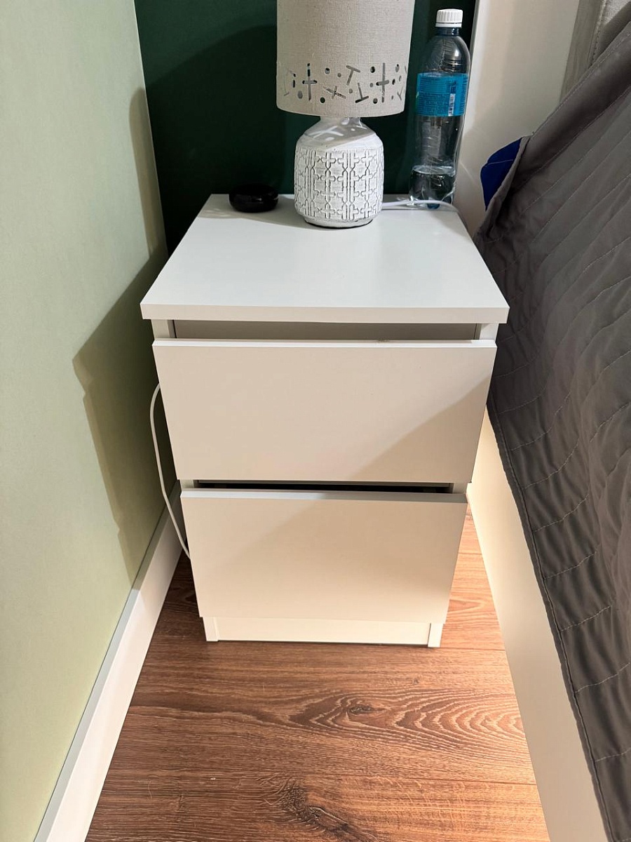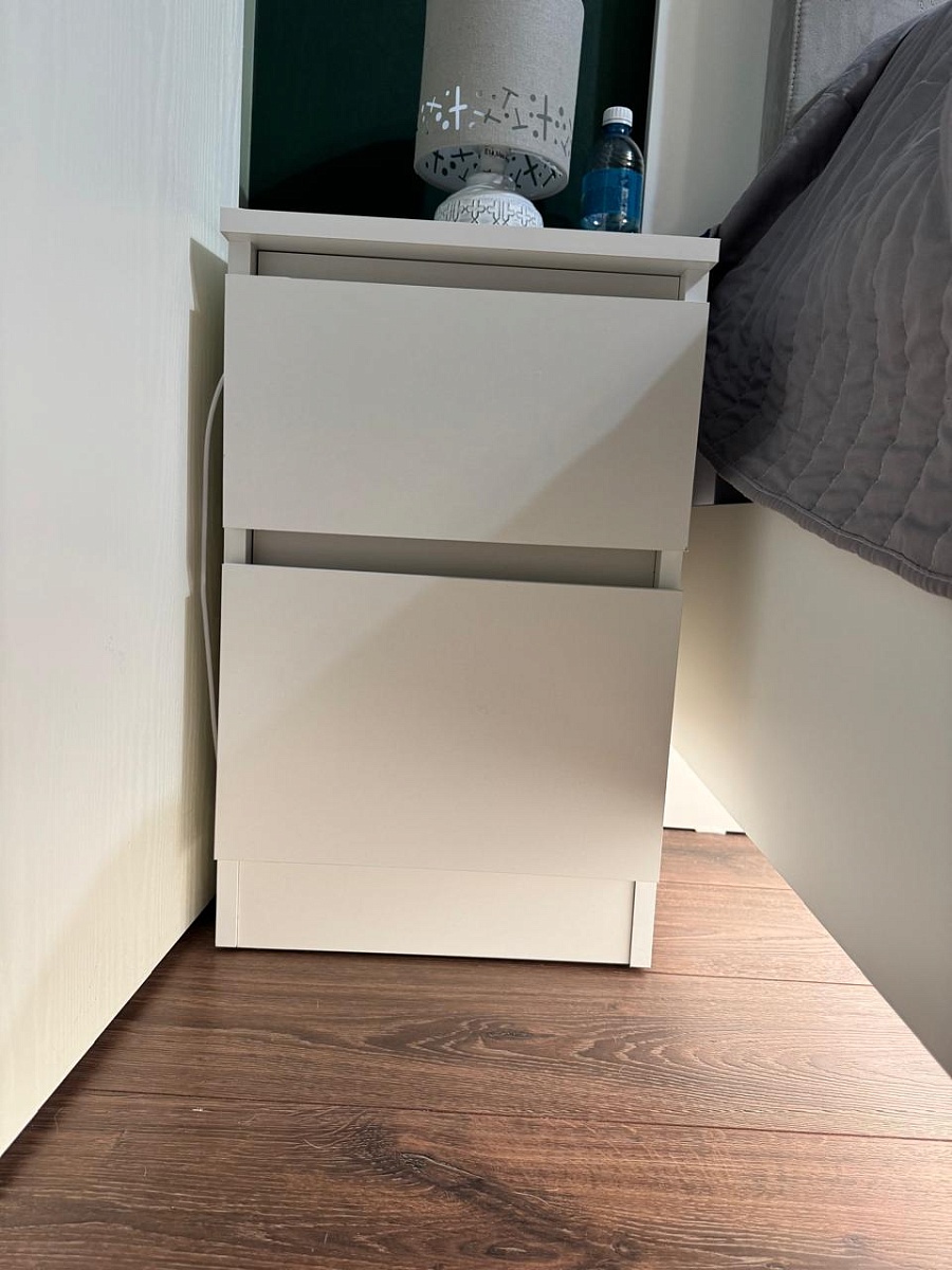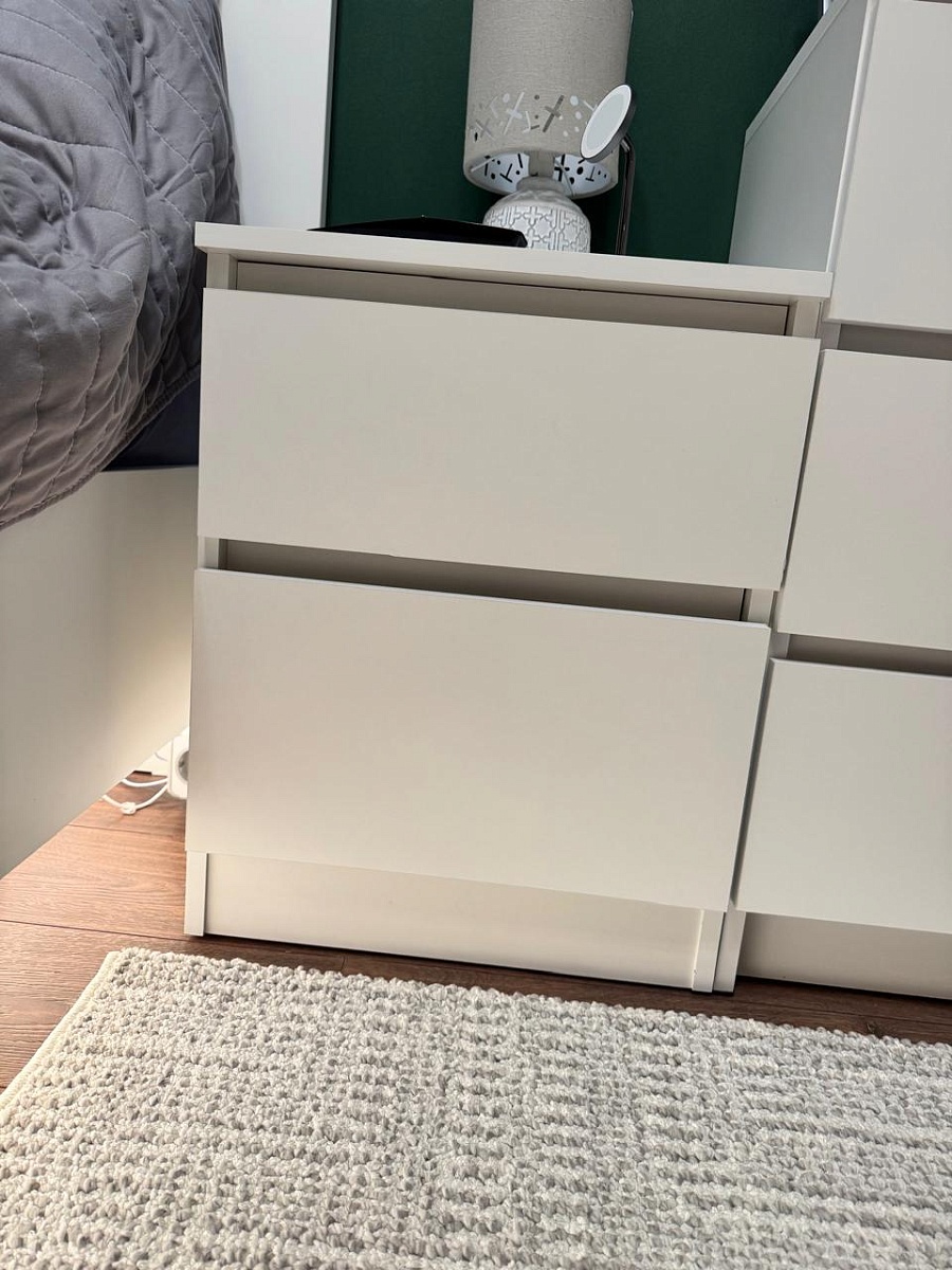 Заказывалась тумба прикроватная Куллен Kullen 3. Собралась без проблем, все устраивает. Заказ 00000207705, 00000207706. Тумбы заказывались под мои размеры, так как не смог найти в мебельных магазинах подходящих габаритов. После сборки думал будут проблемы с наклейками на каждой детали - отклеил без проблем и следа не осталось. Тумбами доволен.